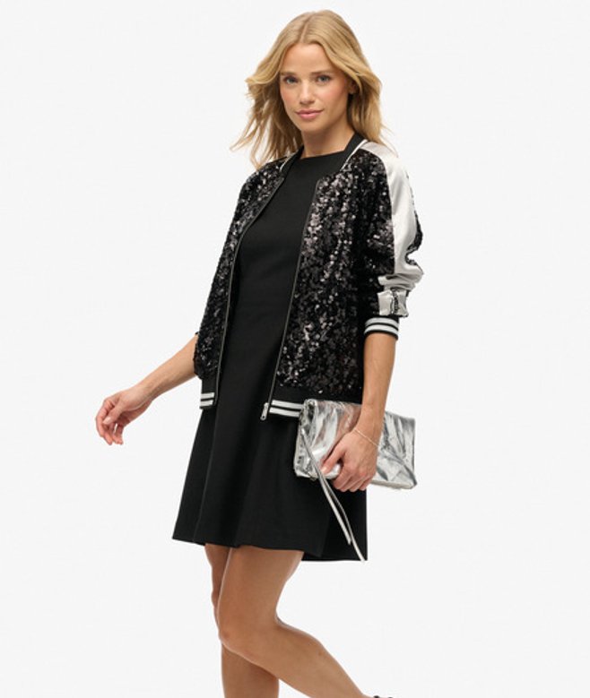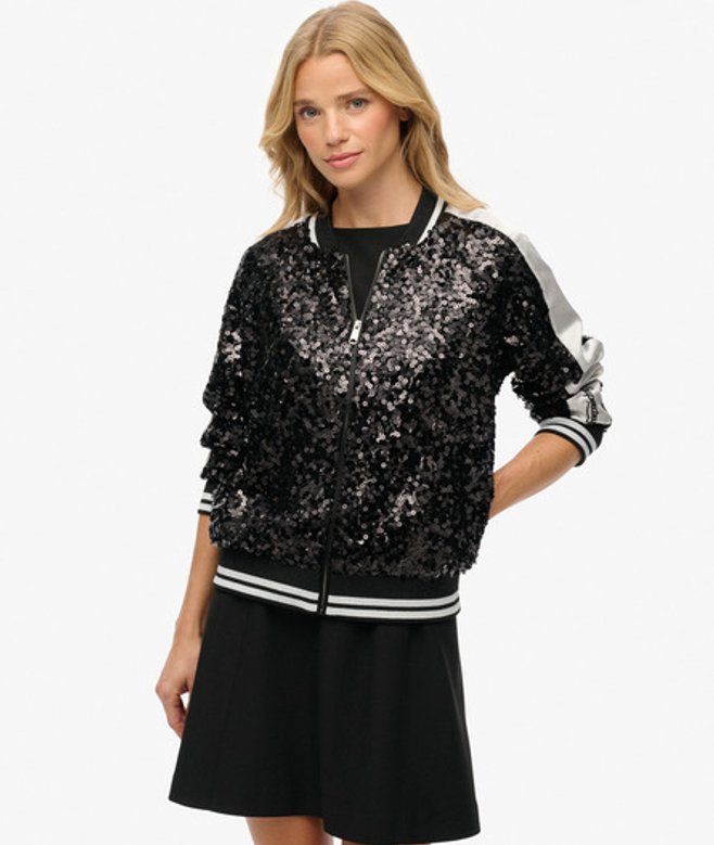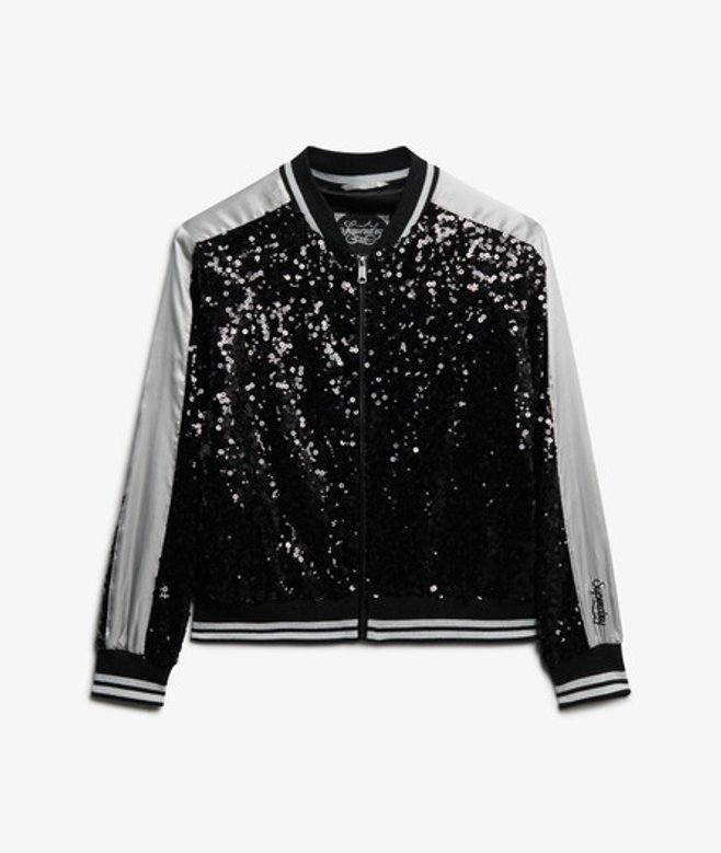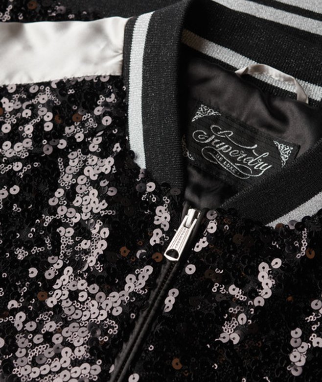 Superdry Women's Sequin Suikajan Jacket Black / Black/ Silver