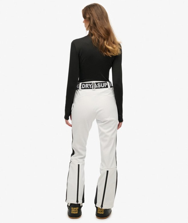 Breathable 10k/mm - Provides airflow comfort for low to mid-level activity Durable water repellency - This fabric has been coated with an advanced water-resistant finish Waterproof 10k/mm - Rainproof and waterproof under light pressure, for light rainy days Popper and zip fastening Elasticated wait with belt loops Elasticated adjustable belt with printed branding Two front pockets with zip fastening Snow cuffs Cuffs with adjustable zip fastening Superdry badges on thigh Embroidered logo down the leg Our Luxe Ski Pants are the perfect fashionable look for the alps, or even après.