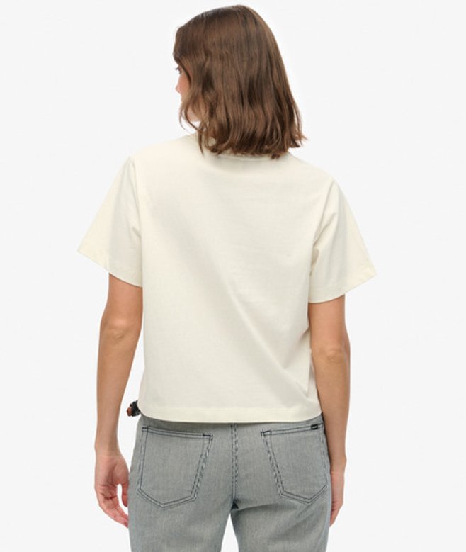Curated with gorgeous colours and subtly contrasting text on the chest, this paired with the boxy fit and cropped length creates a gorgeous, versatile, stylish tee.