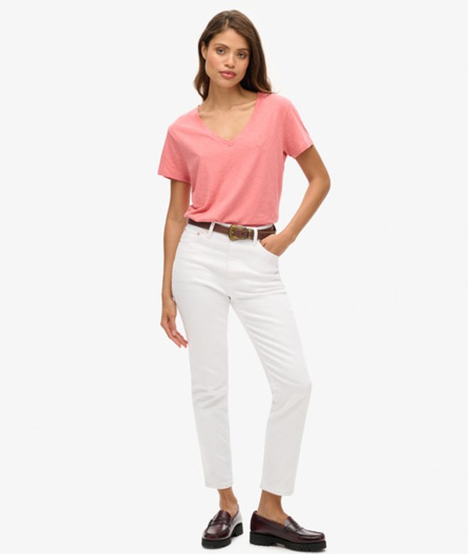 Superdry Women's Slub Embroidered V-neck T-shirt Pink / Mauveglow Pink | ricciano UNITED KINGDOM