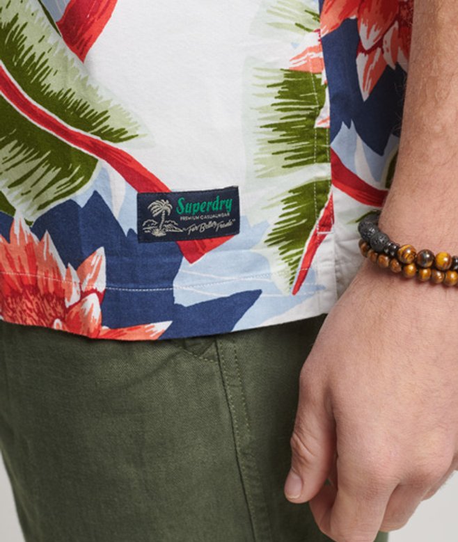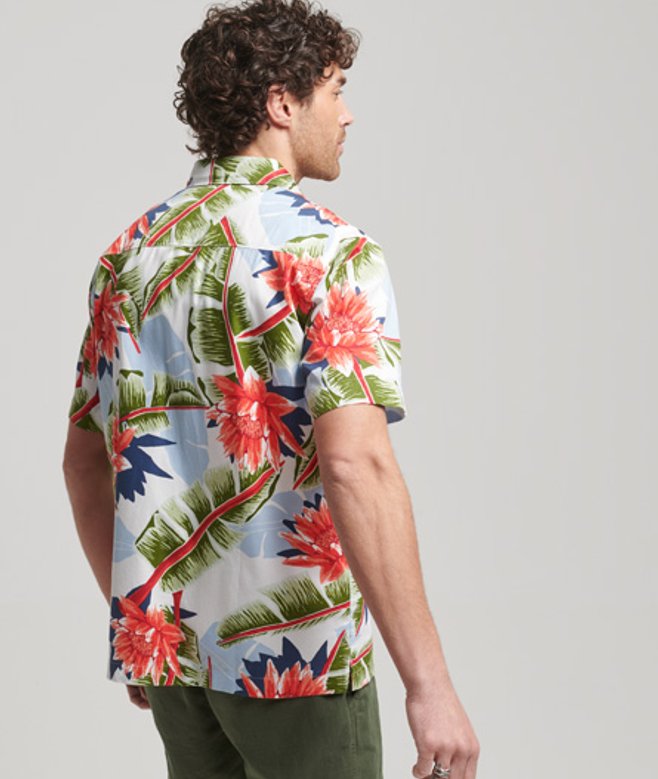 Superdry Herren Weiß, Grün und Rot Kurzärmeliges Hawaiihemd Bedruckt, Größe: M Weiß/grün/rot | ricciano DEUTSCHLAND
