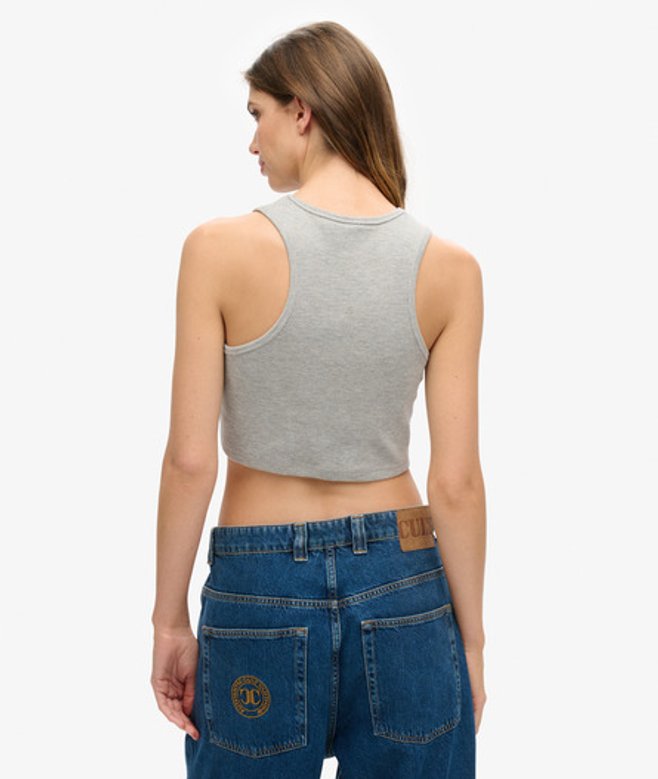 Superdry Damen Grau Kurz Geschnittenes Athletic Essentials Tanktop mit Waffelmuster mit Logodruck, Größe: 40