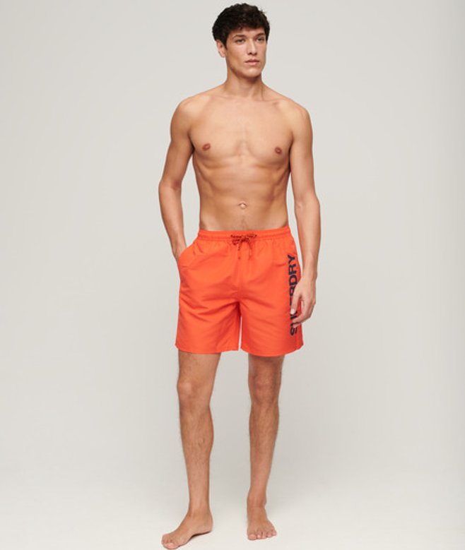 Superdry Herren 17-Zoll-Badeshorts aus Recyceltem Material mit Sportgrafik Rot