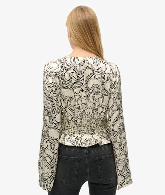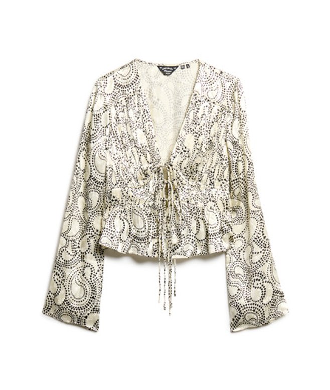Superdry Damen Gewebtes Oberteil mit Falten und Ärmeln im 70er-Jahre-Stil Weiß | ricciano DEUTSCHLAND