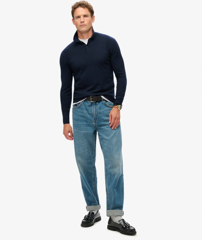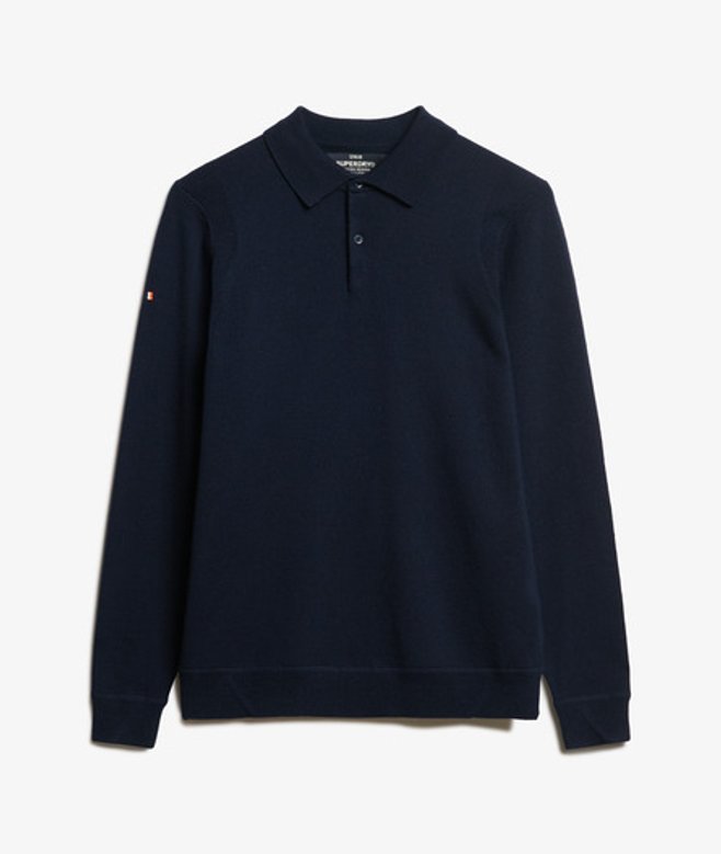 Superdry Herren Marineblau Langärmeliger Polo-Pullover aus Merinowolle, Größe: L