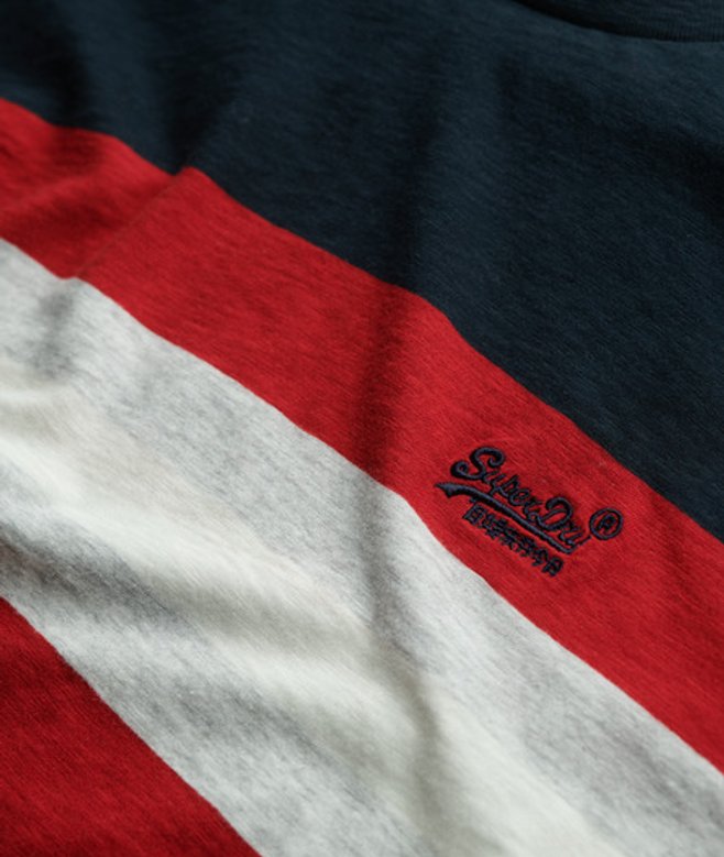 Wähle deine normale Größe Gerippter kontrastierender Rundhalsausschnitt Aufgestickter Schriftzug auf der Brust Charakteristisches Etikett am Ärmel Unser gestreiftes Essentials T-Shirt wurde mit einem zart gestickten Text auf der Brust und Jersey-Material gefertigt, sodass es super luftig und stilvoll ist, genau das, was du für die kommende Saison brauchst.