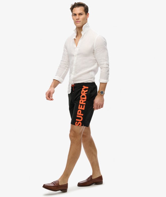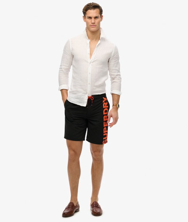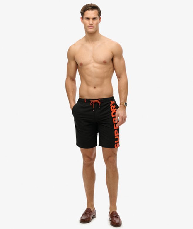 Superdry Herren Klassische 48-cm-Boardshorts mit Logo, Schwarz