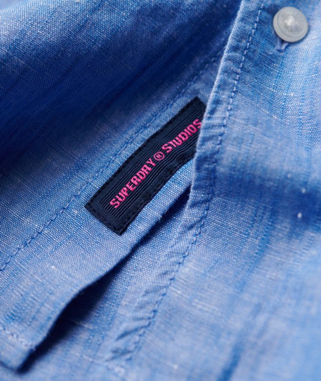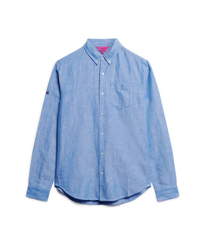 Superdry Homme Chemise Boutonnée en lin et Coton bio Studios Bleu