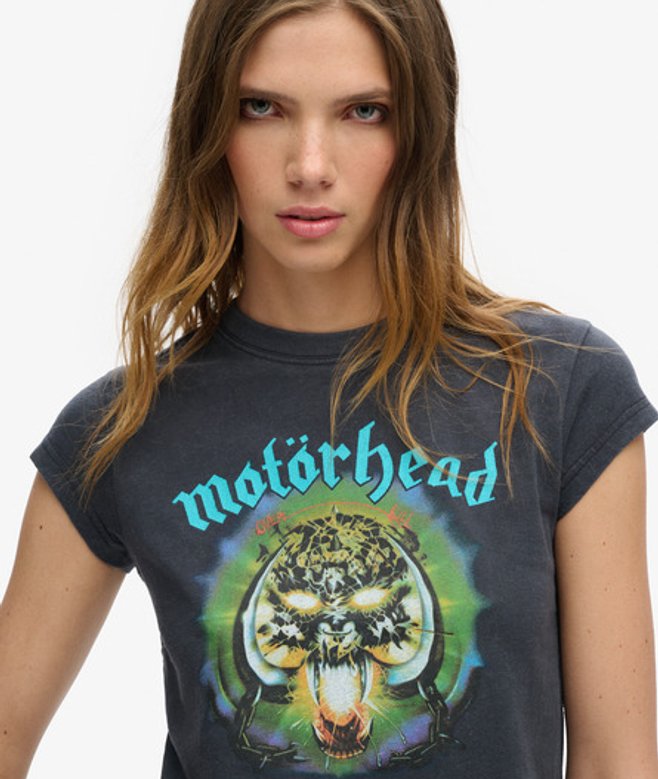Superdry Femme T-shirt à Mancherons Motörhead x Superdry Noir