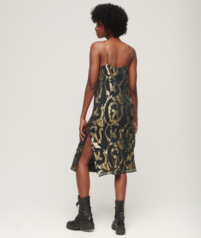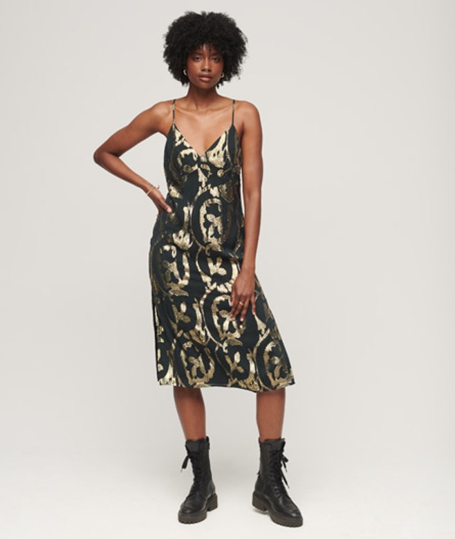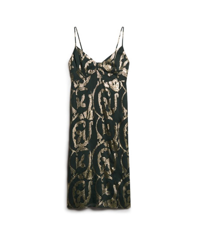 Superdry Femme Robe Mi-longue Métallisée à Enfiler Vert