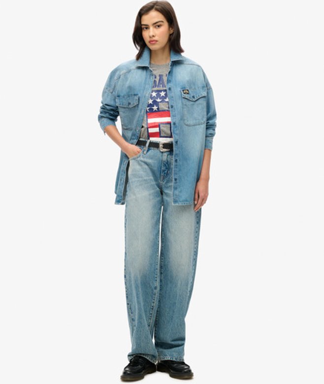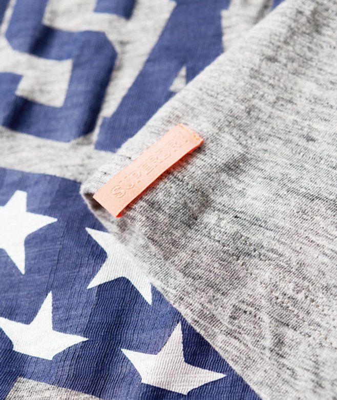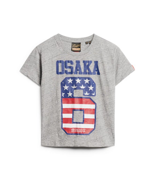 Superdry Dames T-Shirt À Drapeau 90'S Osaka 6, Gris et Bleu,