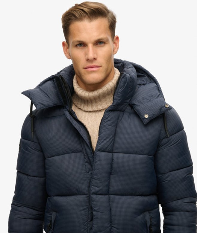 Superdry Homme Doudoune Longue Ripstop, Bleu Marine,