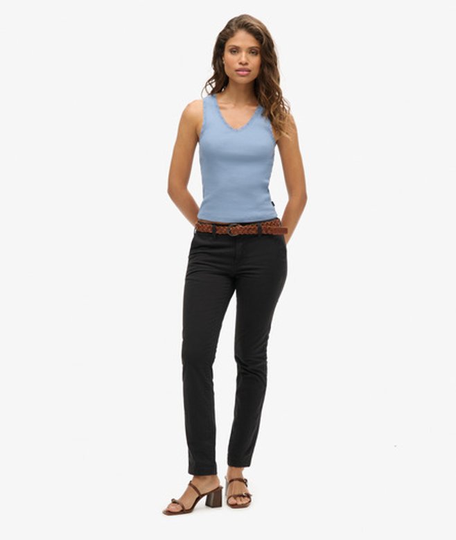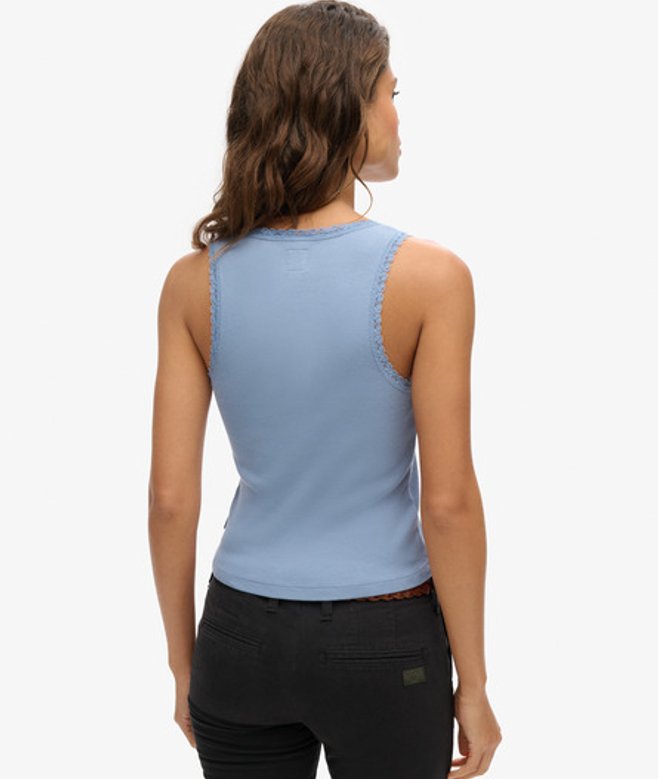 Coupe slim pour un look ajusté Tissu côtelé Liseré en dentelle Encolure dégagée Sans manches Étiquette Superdry UK 6-8, US 2-4, EU 34-36 UK 10-12, US 6-8, EU 38-40 UK 14-16, US 10-12, EU 42-44
