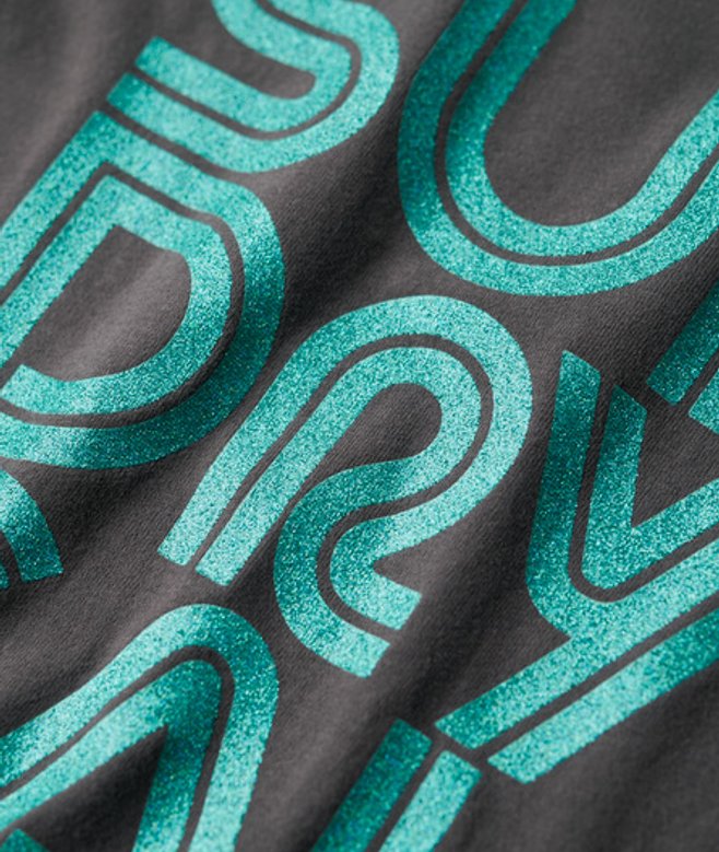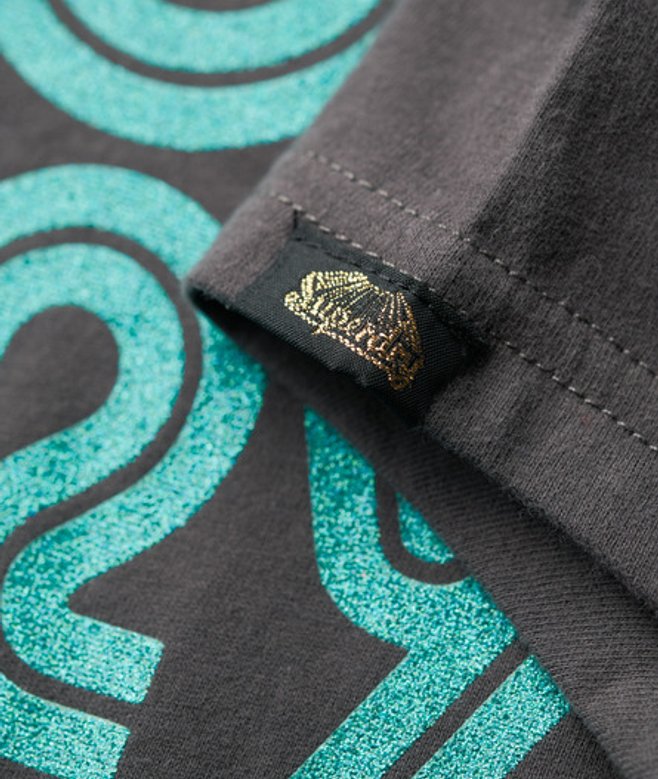Coupe slim pour un look plus ajusté Ras du cou côtelé Mancherons Logo Superdry scintillant imprimé Étiquette signature Superdry