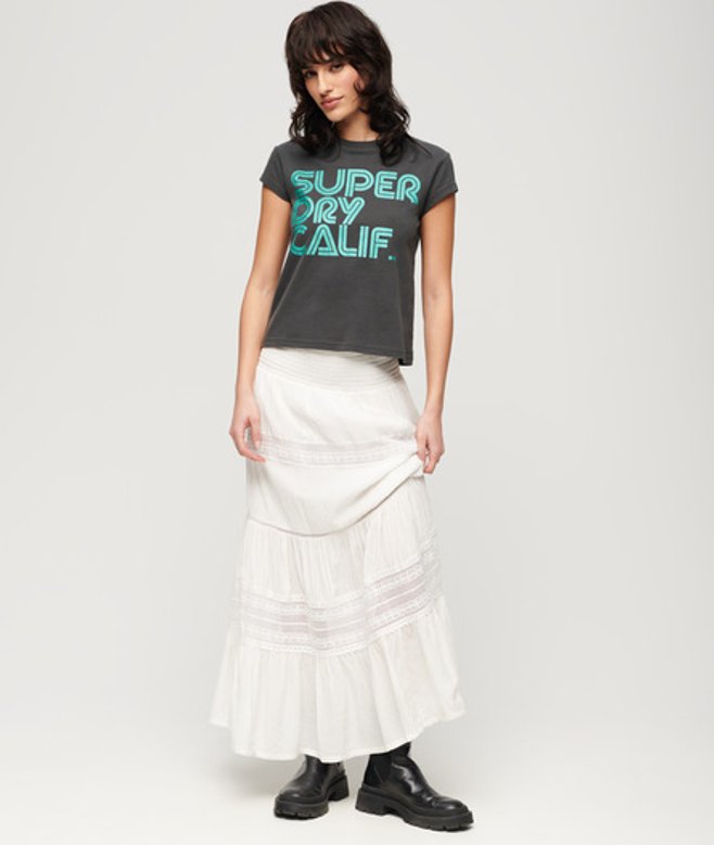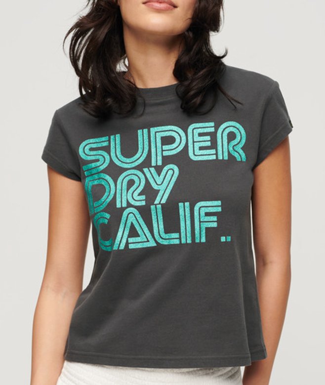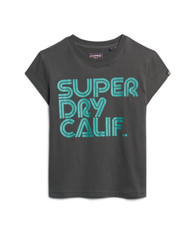 Superdry Femme T-shirt à Logo Scintillant Retro Noir | ricciano FRANCE