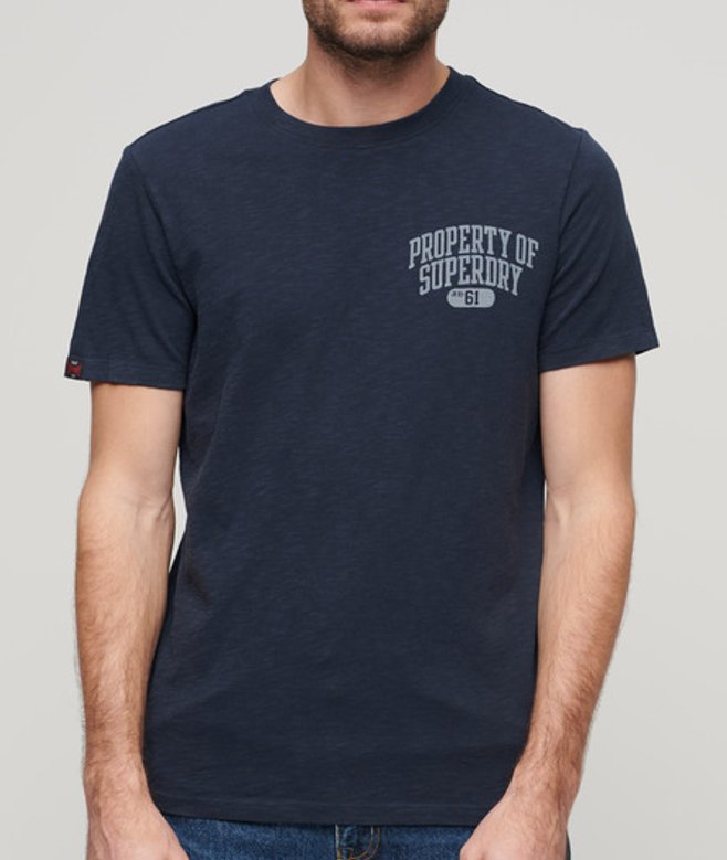 Superdry Homme Imprimé T-Shirt à Motif Athletic College, Bleu Marine, | ricciano FRANCE
