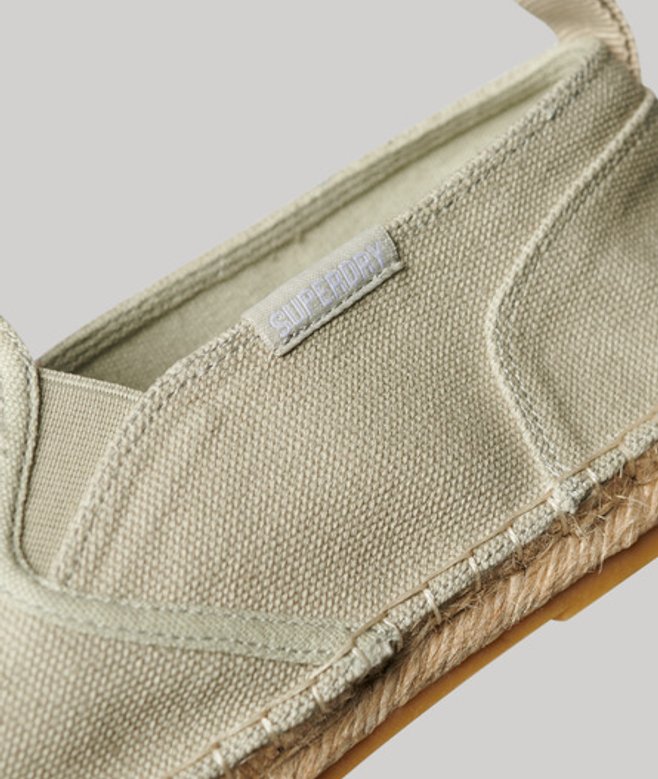 Modèle classique Tige en toile Bords en corde Tirant Semelle en caoutchouc Semelle intérieure en corde Marquage Superdry discret