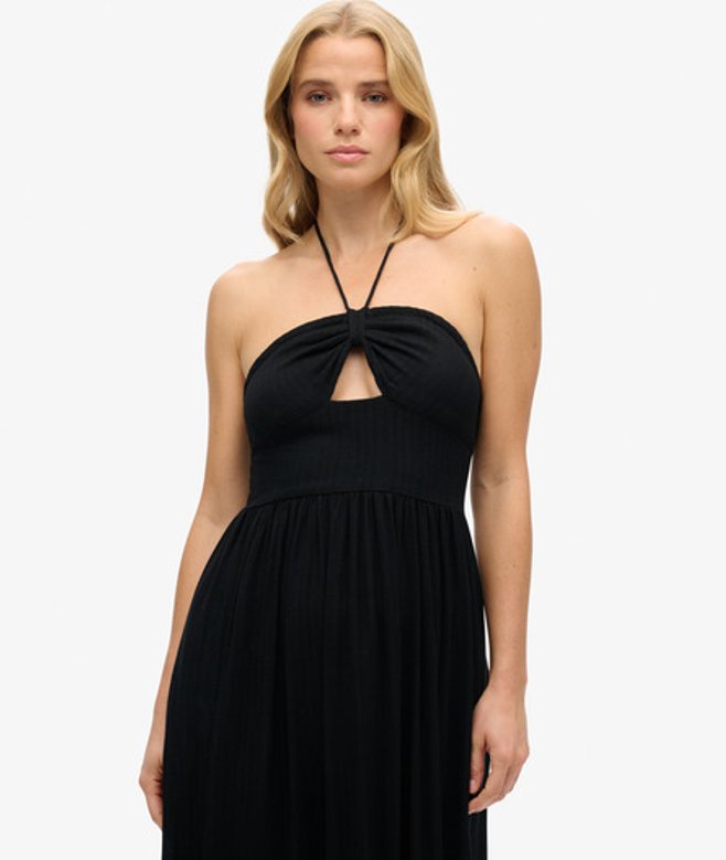 Superdry Femme Robe Mi-longue Ajourée Noir