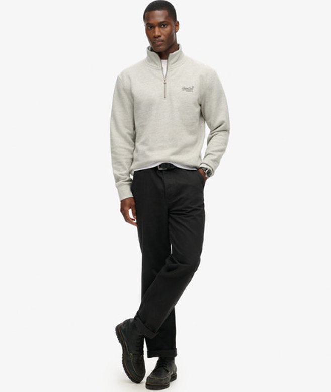 Superdry Homme Sweat à Col Tunisien Et Logo Essential Gris,