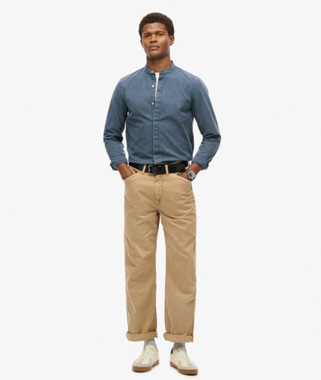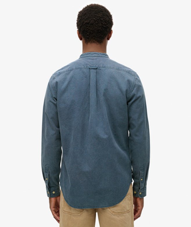 Cette saison, apporte une touche vintage à ta garde-robe avec notre chemise indigo à col tunisien Merchant.