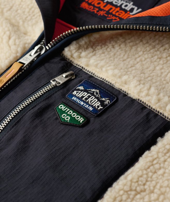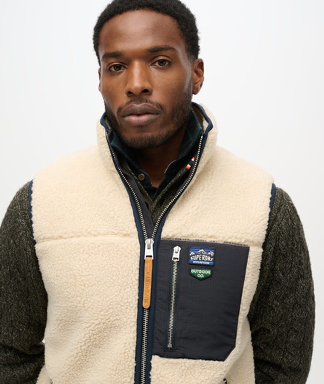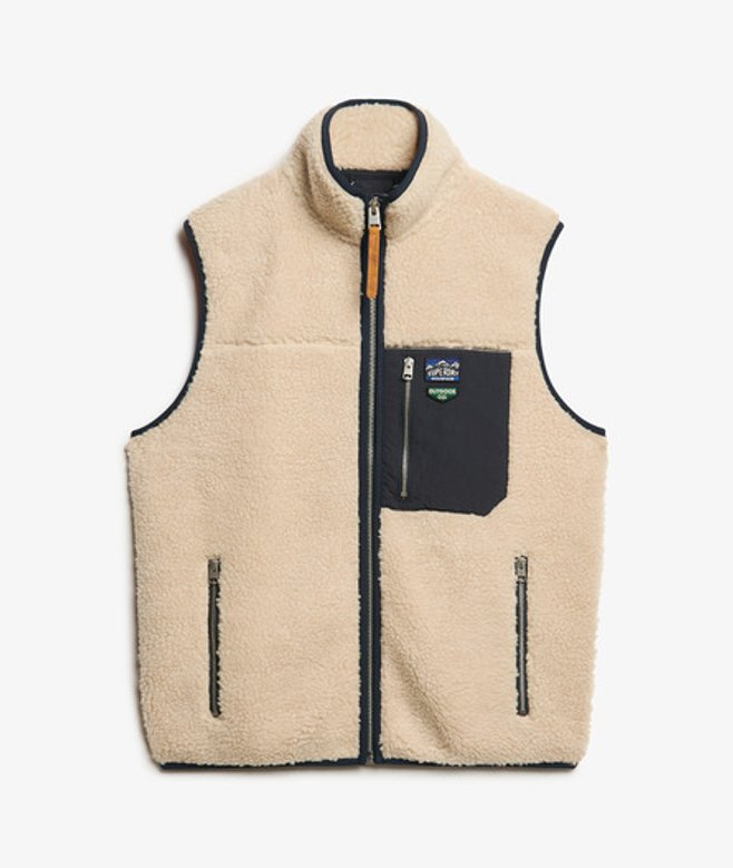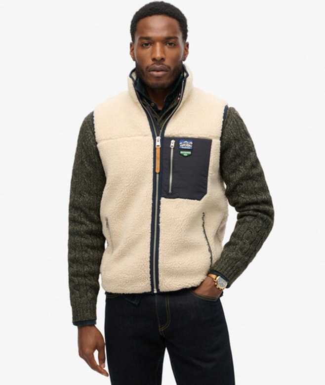 Superdry Homme Gilet en Polaire Borg Vintage Retro Crème/marine