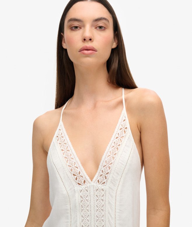 Choisis ta taille habituelle Robe caraco longue avec finitions en dentelle Bretelles fines et dos ouvert La robe d'été dont tu ne pourras plus te passer.