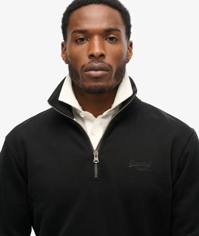 Superdry Homme Sweatshirt Demi-zip Essential Logo Noir