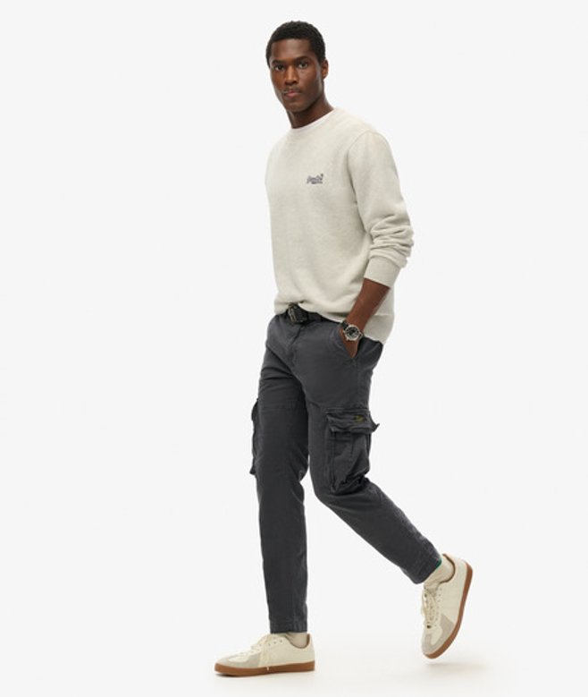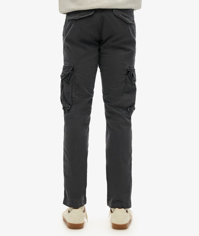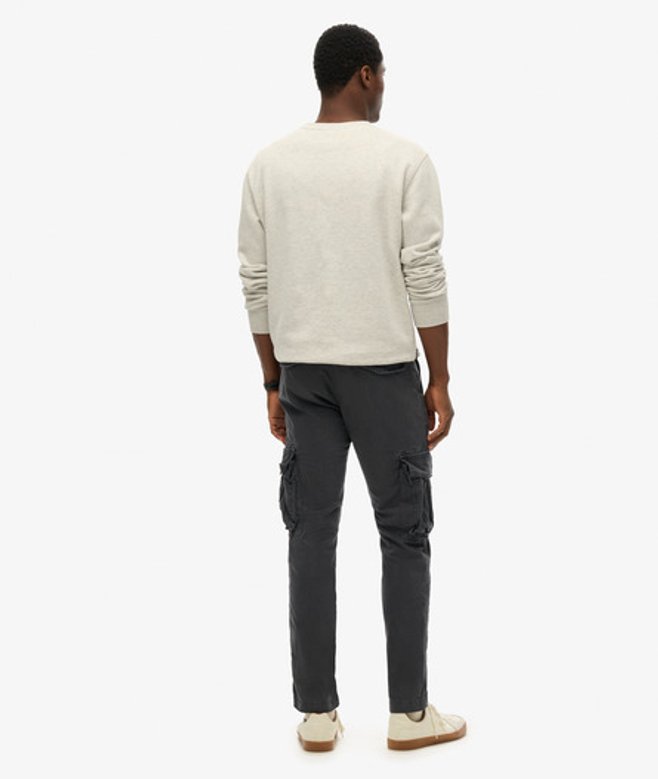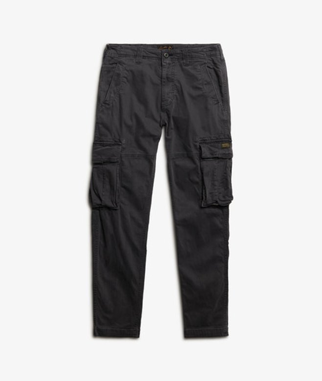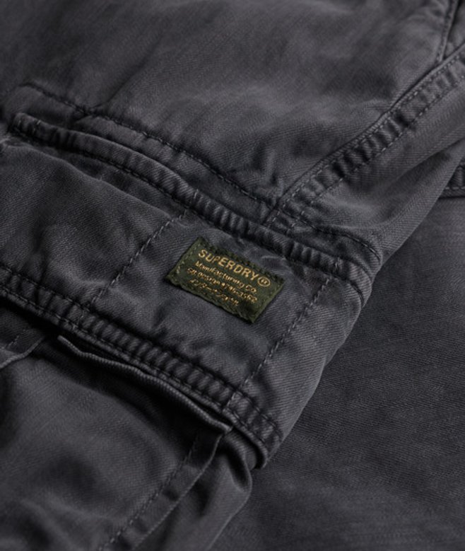 Fermeture zippée et boutonnée Passants de ceinture Deux poches latérales Deux poches à bouton-pression sur les jambes Deux poches arrière à bouton-pression Écussons Superdry vintage