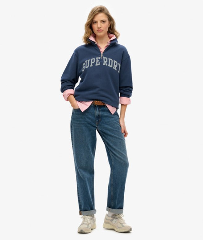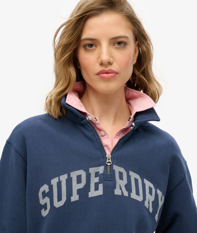 Superdry Femme Sweat à col Zippé Athletic Essentials Bleu Marine