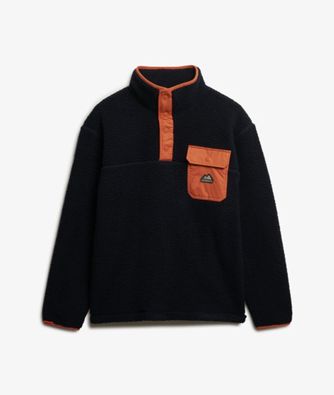 Choisis ta taille habituelle Col à boutons-pression Poignets élastiqués contrastants Poche poitrine contrastée et écusson brodé Étiquette caoutchoutée sur le poignet Alliance ultime du confort et du style, notre pull en polaire avec col à boutons-pression Fuji est idéal pour te couvrir par temps frais, sans transiger sur ton esthétique authentique.
