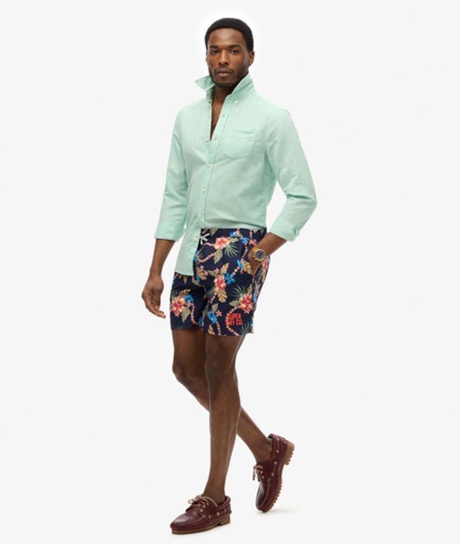 Superdry Homme Short de Bain à Imprimé Hawaïen Longueur 43 cm Navy