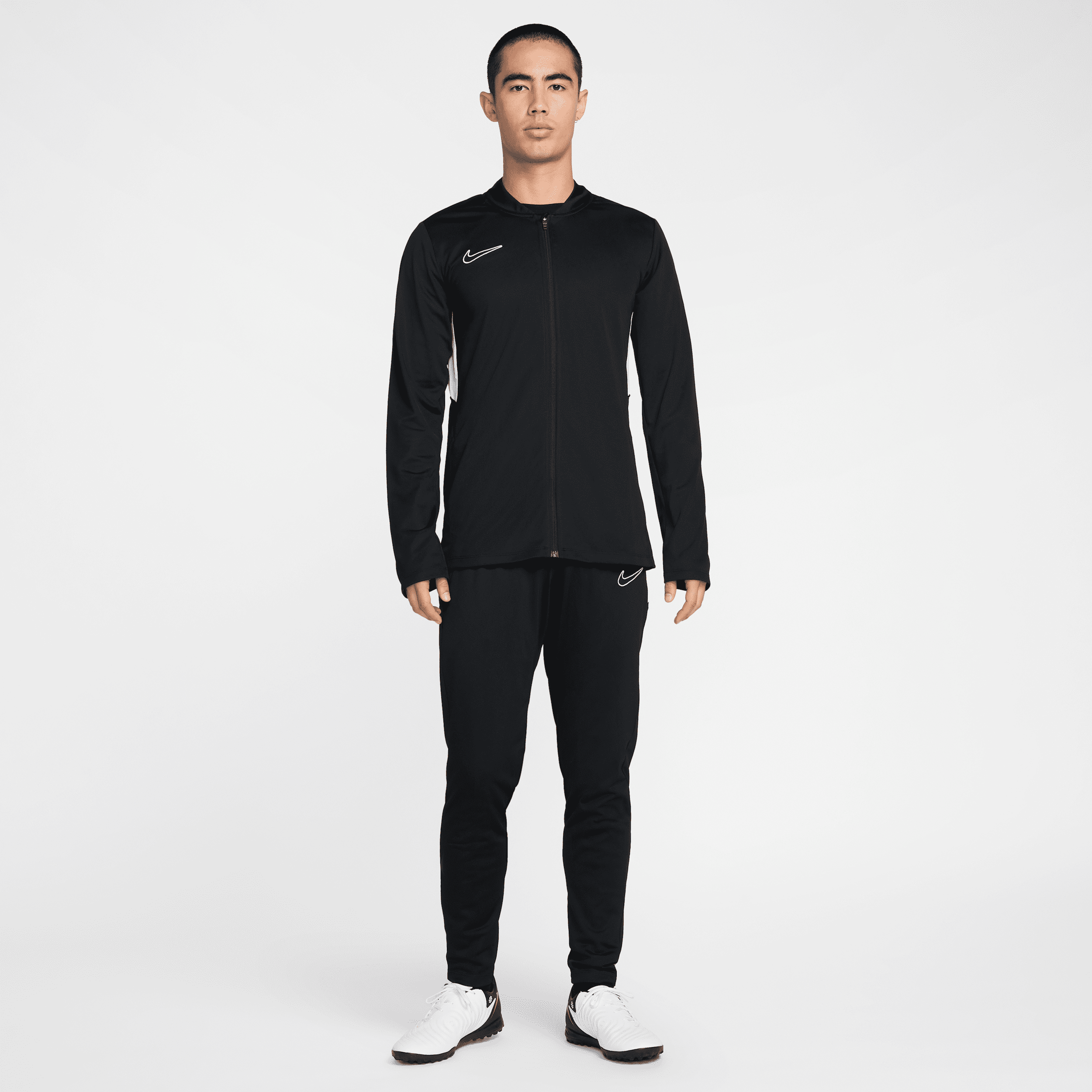 Um caimento elegante para você se mover sem distrações em qualquer situação.BenefíciosA tecnologia Nike Dri-FIT absorve o suor para uma evaporação mais rápida, ajudando a manter seu corpo seco e confortável.Armazene seus itens essenciais nos bolsos abertos do blusão e nos bolsos com zíper da calça.O tecido de malha macio é leve e fresco.Detalhes do produtoCalça: cós elástico com cordãoJaqueta: design com zíper inteiriçoEstrutura: 100% poliésterImportadoLavagem à máquina