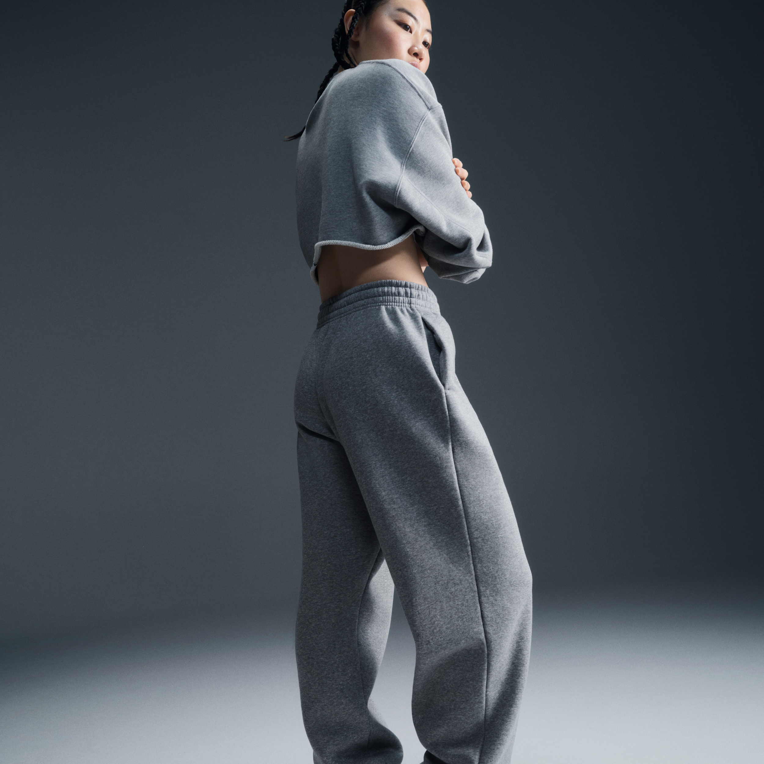 Pantaloni tuta oversize a vita alta Nike Phoenix Fleece – Donna - Grigio