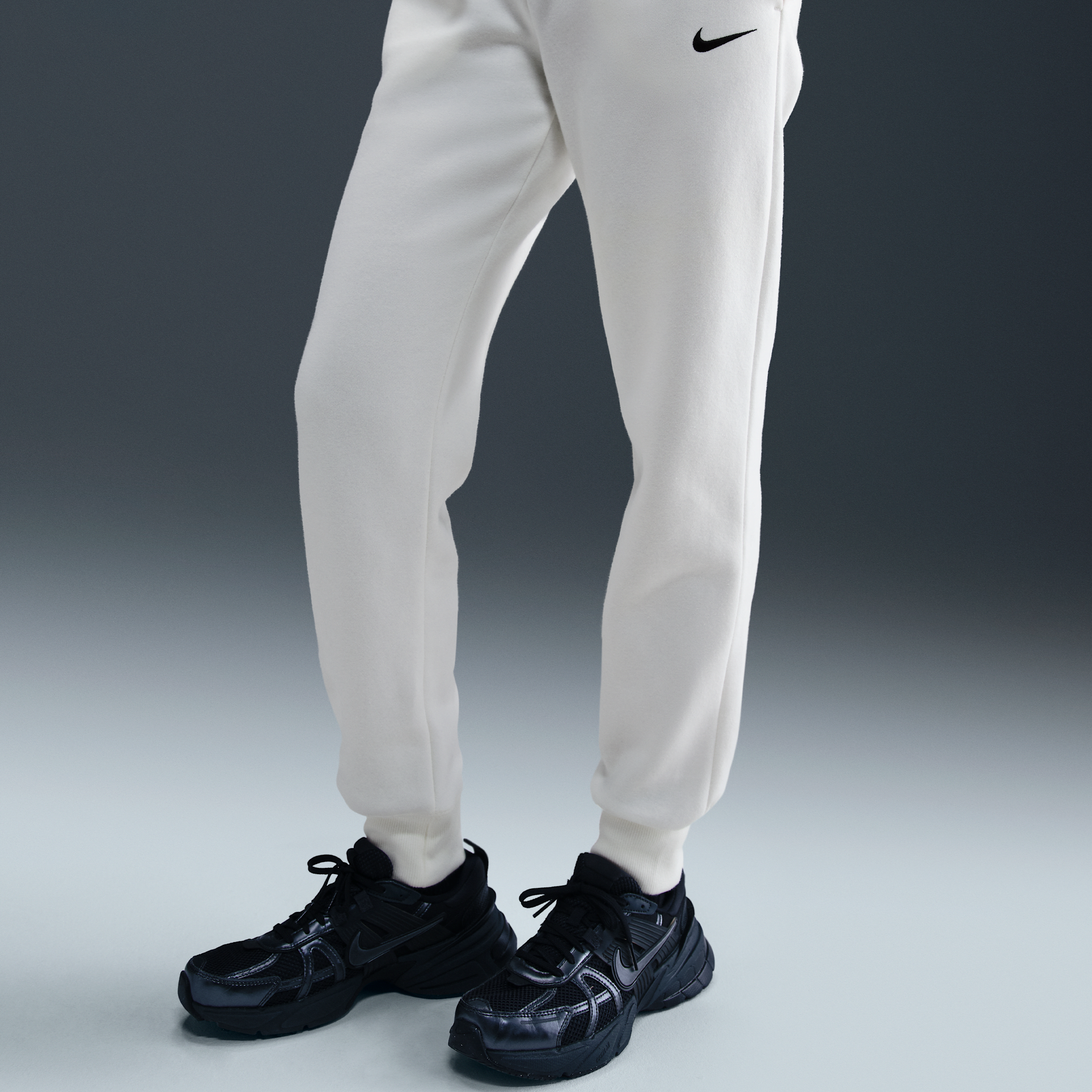 Pantaloni tuta a vita media Nike Phoenix Fleece – Donna - Bianco
