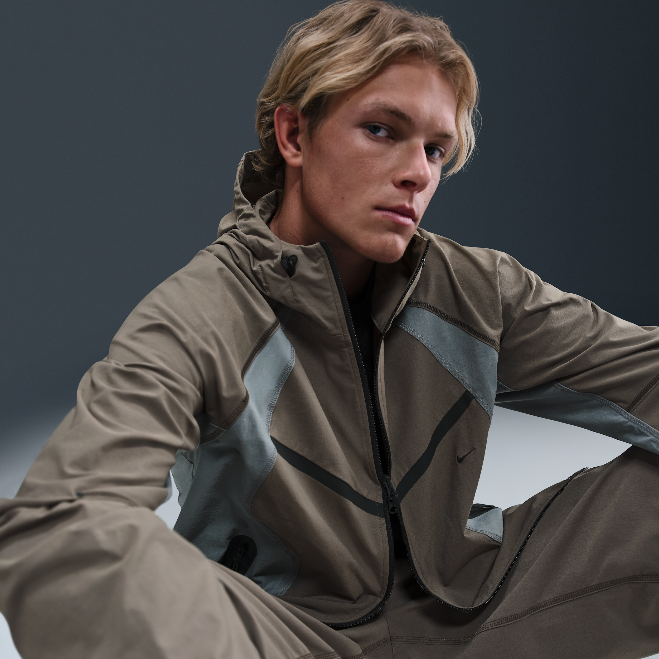 Giacca Windrunner ampia in tessuto Dri-FIT a blocchi di colore Nike Tech – Uomo - Grigio