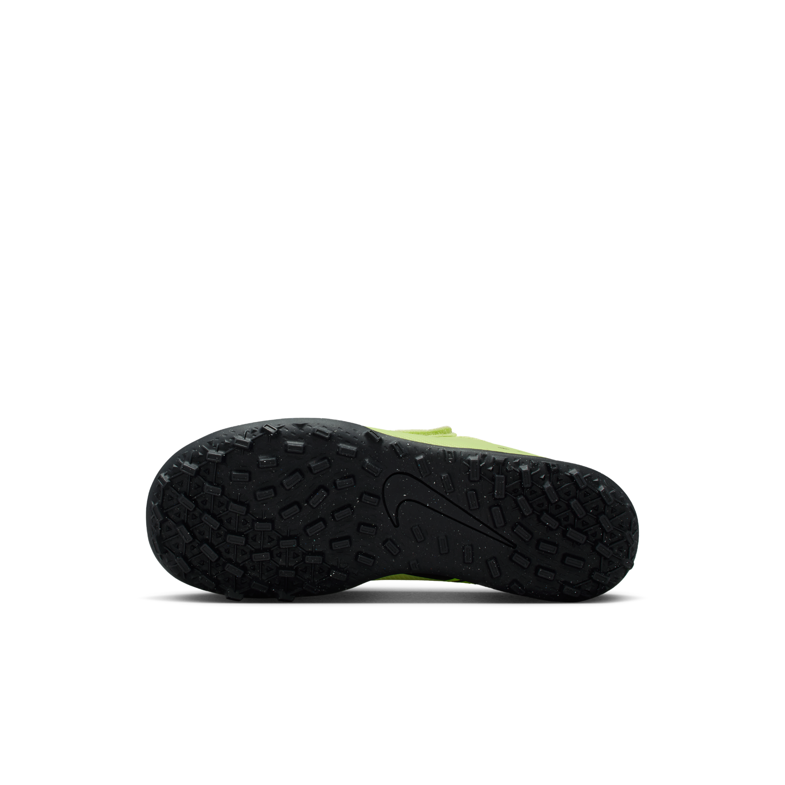 ¡Es hora de salir a correr! Tacto suave: La piel sintética de la parte superior tiene pequeños detalles texturizados, que proporcionan un mayor agarre y mejoran el control del balón cuando regateas a gran velocidad.,Tracción rápida: Suela exterior de goma que ofrece tracción sobre superficies de moqueta - Turf.,Ajuste cómodo: Cómodo forro que envuelve el pie de los más pequeños para ofrecer un ajuste natural y ceñido.