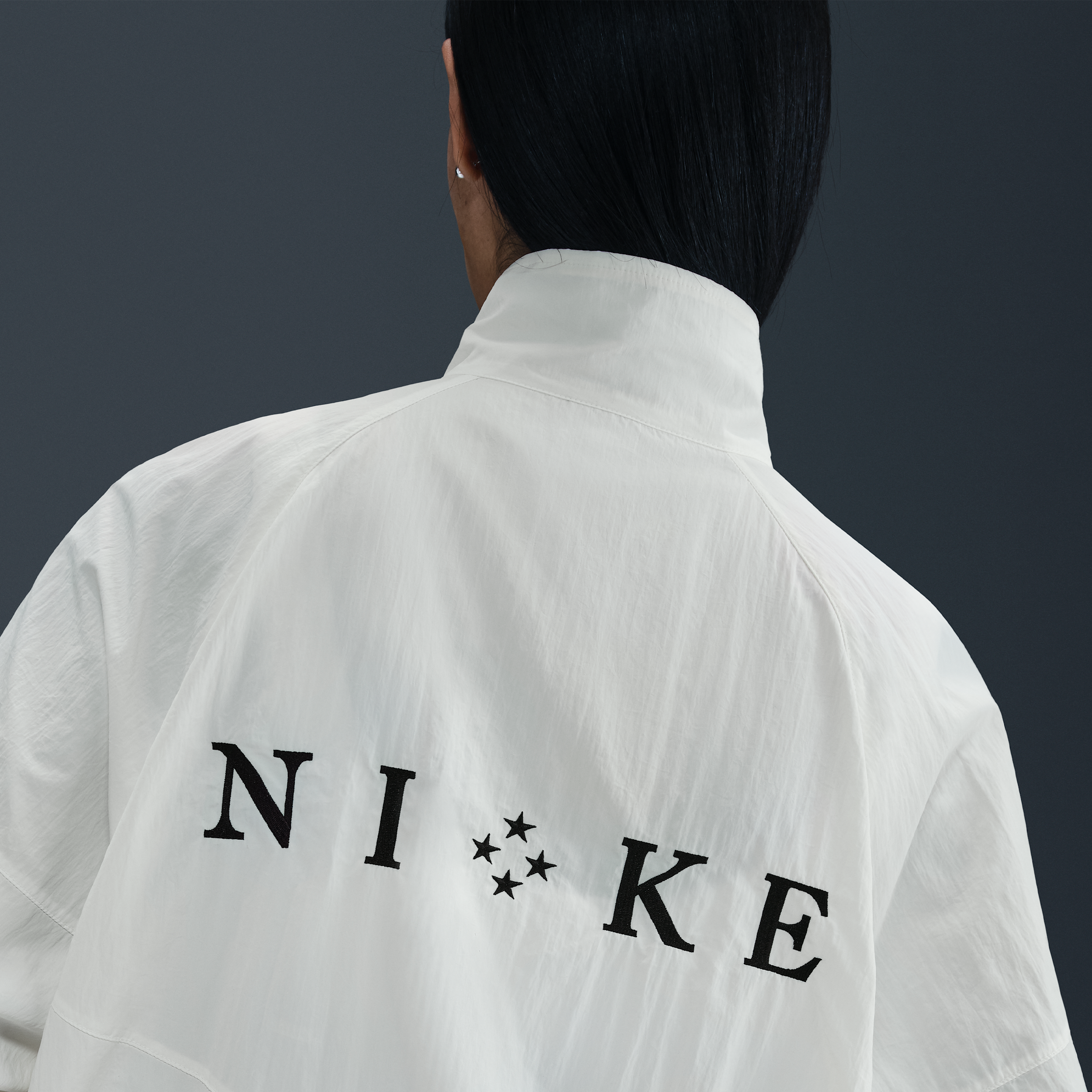 Esta chaqueta ligera y repelente al agua juega con la caída y las proporciones del estilo Windrunner clásico para actualizar un diseño tradicional.