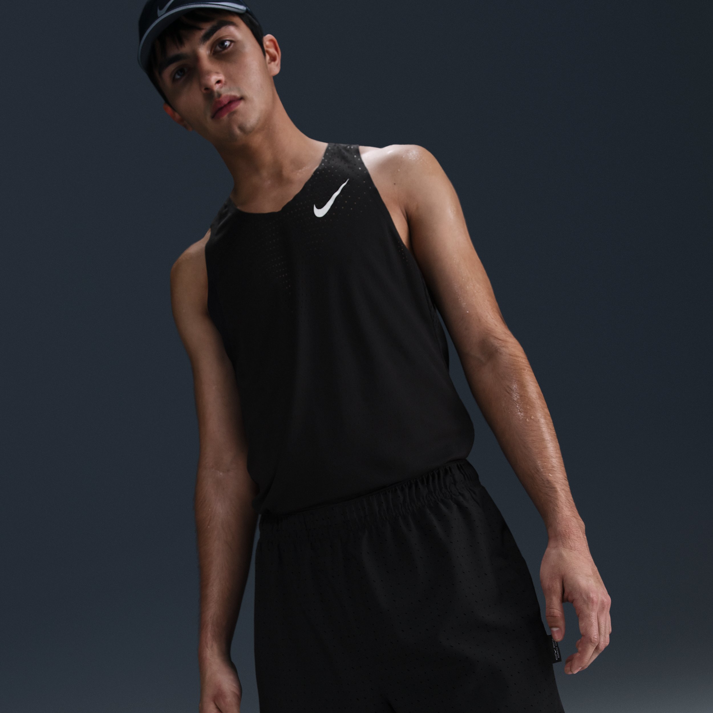 El tejido liso con perforaciones y una tecnología Dri-FIT que capilariza el sudor mantiene la frescura durante la rutina de entrenamiento.