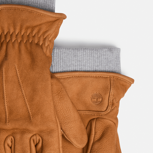 Timberland - Lederhandschuhe mit Rippstrick in Gelb