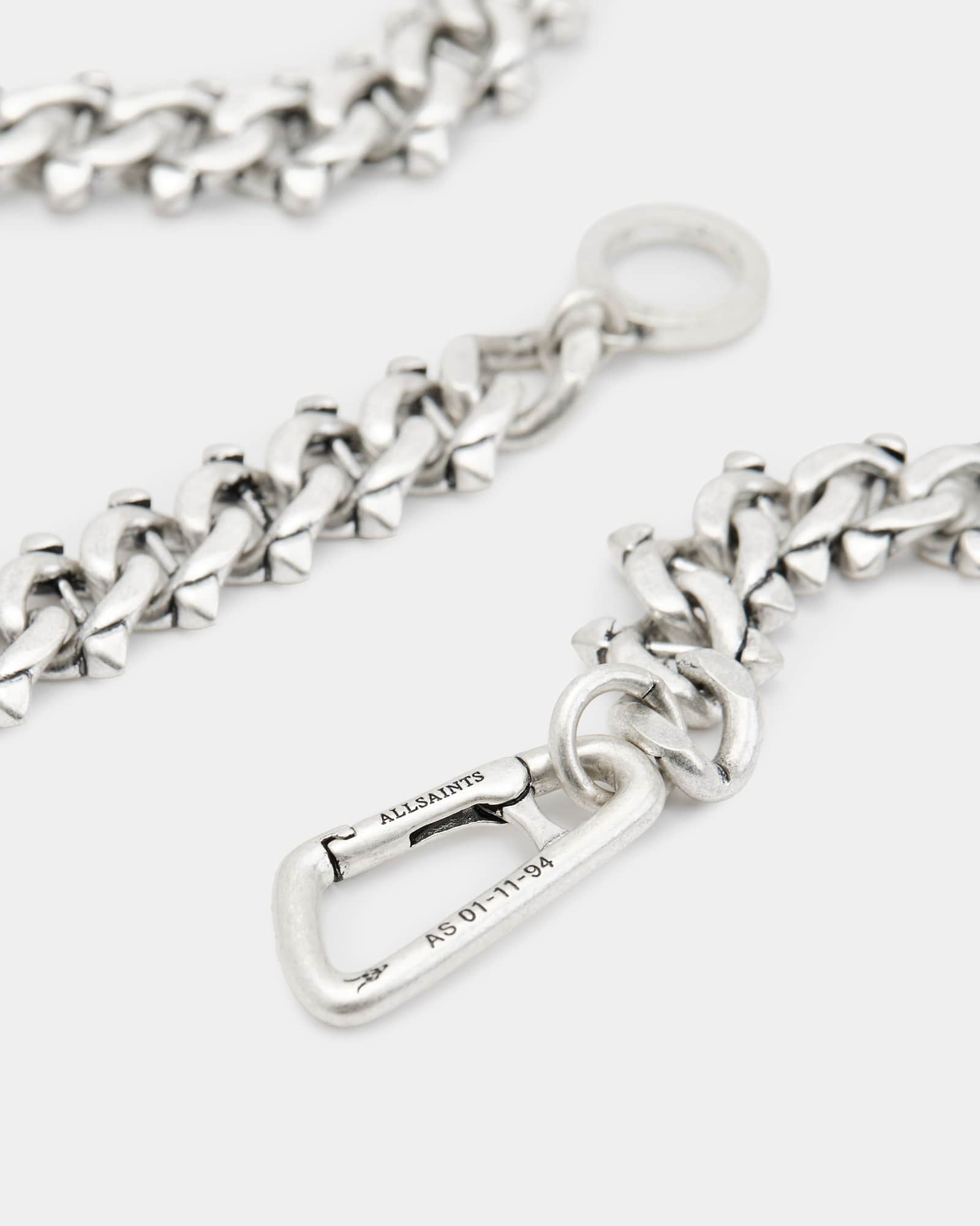 Necklace Carabiner closure Engraved AllSaints logo Chunky curb chain Silver-tone finish