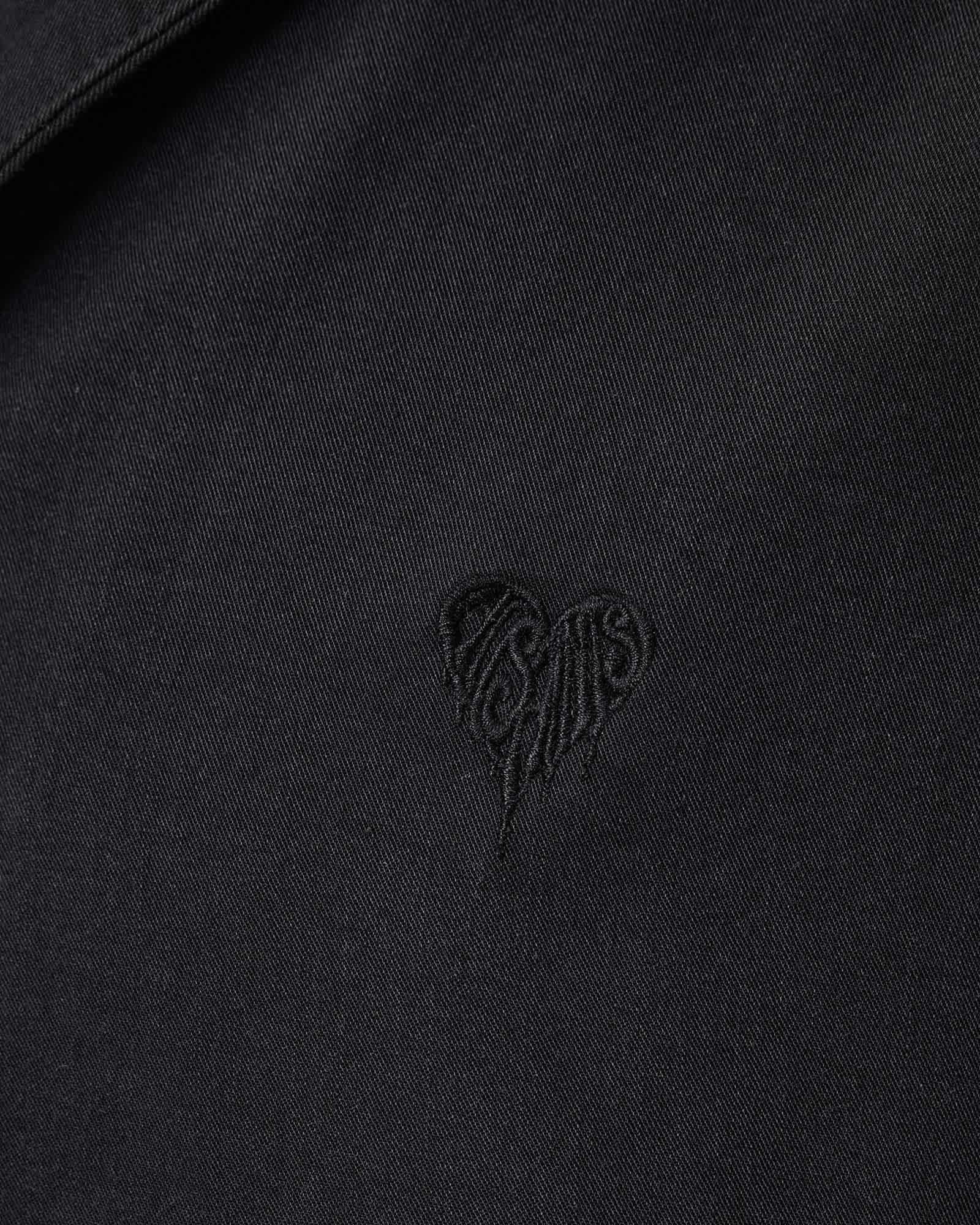 This shirt is designed to an oversized fit Button closure Resort collar Short sleeves Dripping heart embroidery Straight hem Draped fabric, This shirt is designed to an oversized fit, Button closure , Resort collar