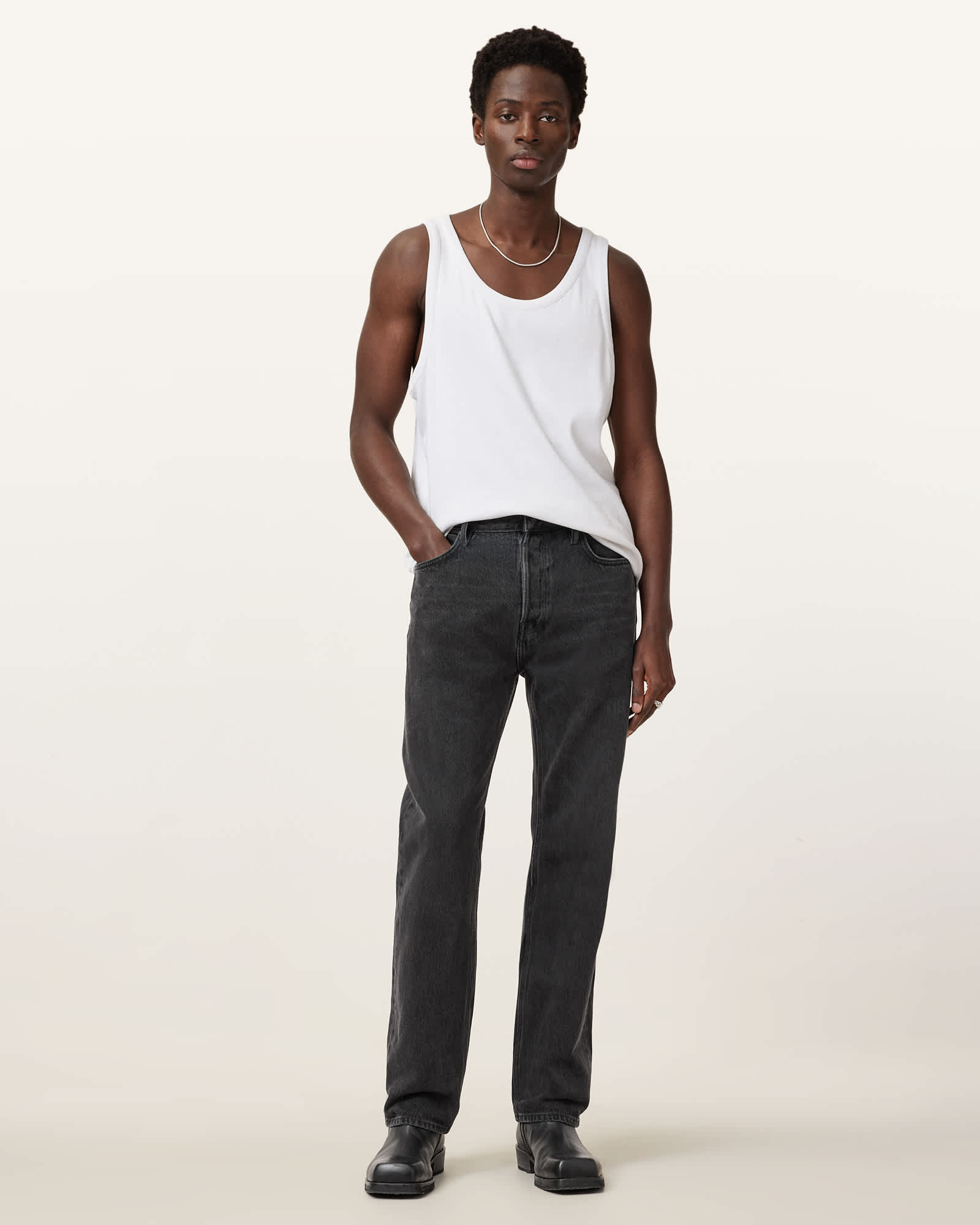 These jeans are designed to be regular fitting with straight-leg shaping Button closure Mid-rise Five-pocket construction Rigid denim Straight leg Reinforced back pockets Interior printed pocket bags Embossed leather patch on the waistband Ramskull back pocket tab Based on iconic workwear styles, the Reid Jeans are made from our most rigid denim offering a straighter shape