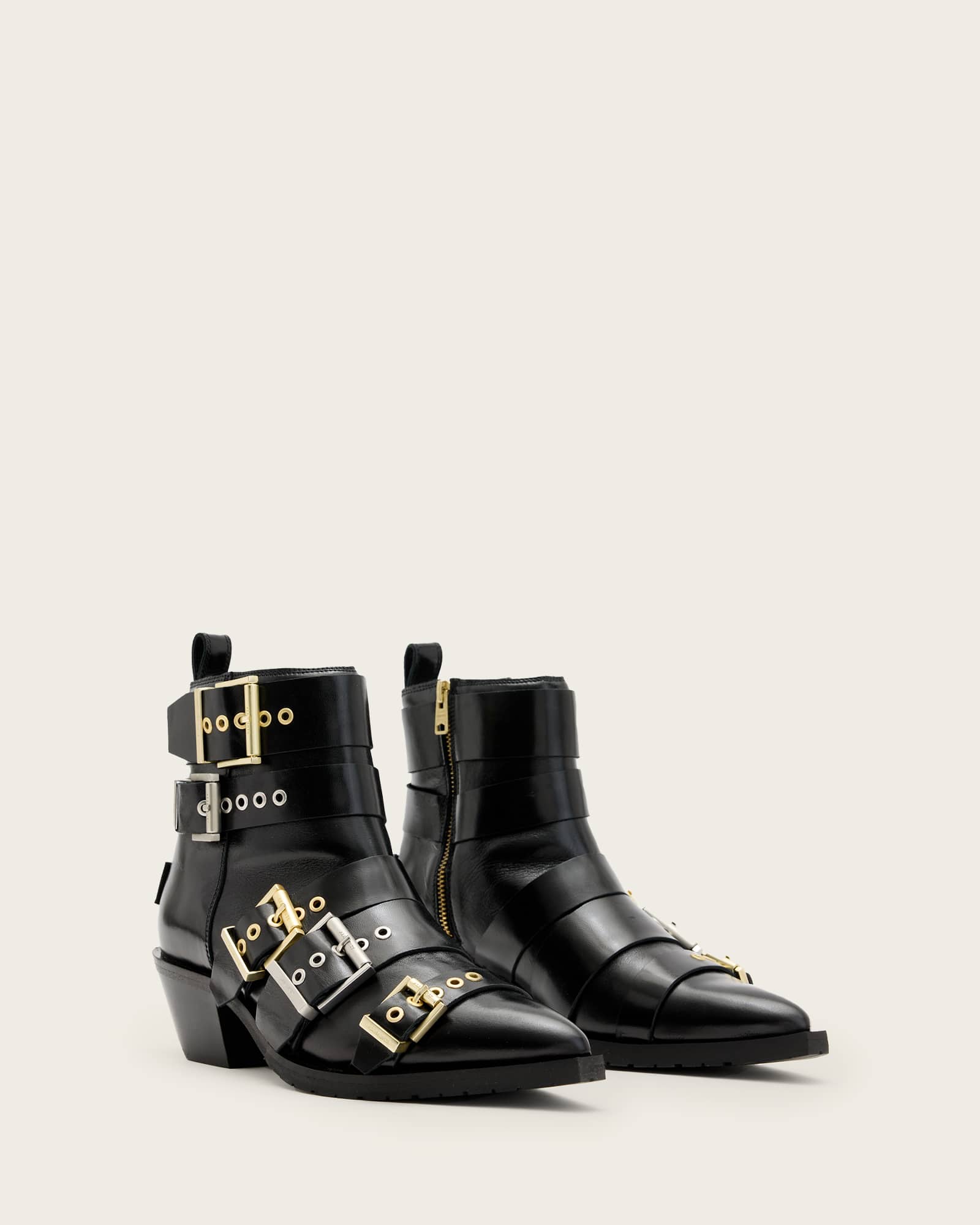 AllSaints Jane Buckle Pointed Leather Boots,, Black