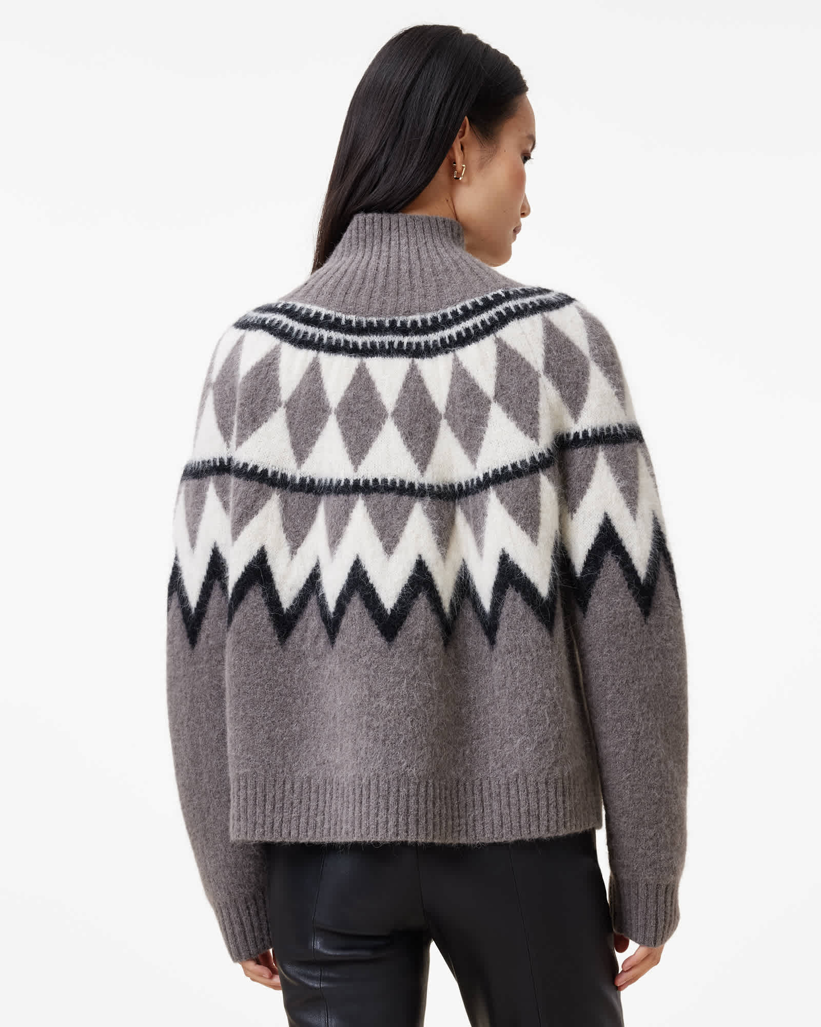 AllSaints Tura Funnel Neck Relaxed Fit Jumper,, Grey/White | ricciano CANADA