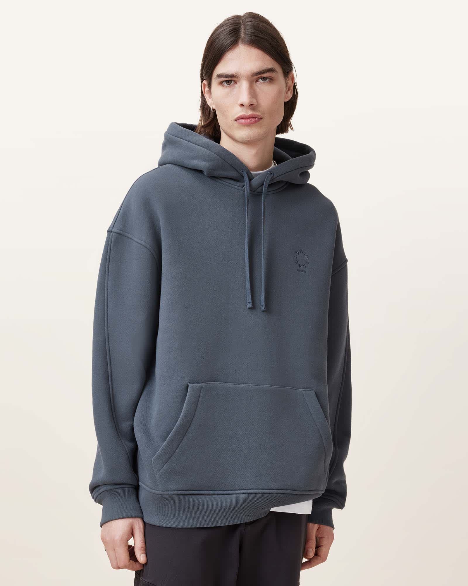 AllSaints Haven Embroidered Logo Oversized Hoodie,, Pitched Blue