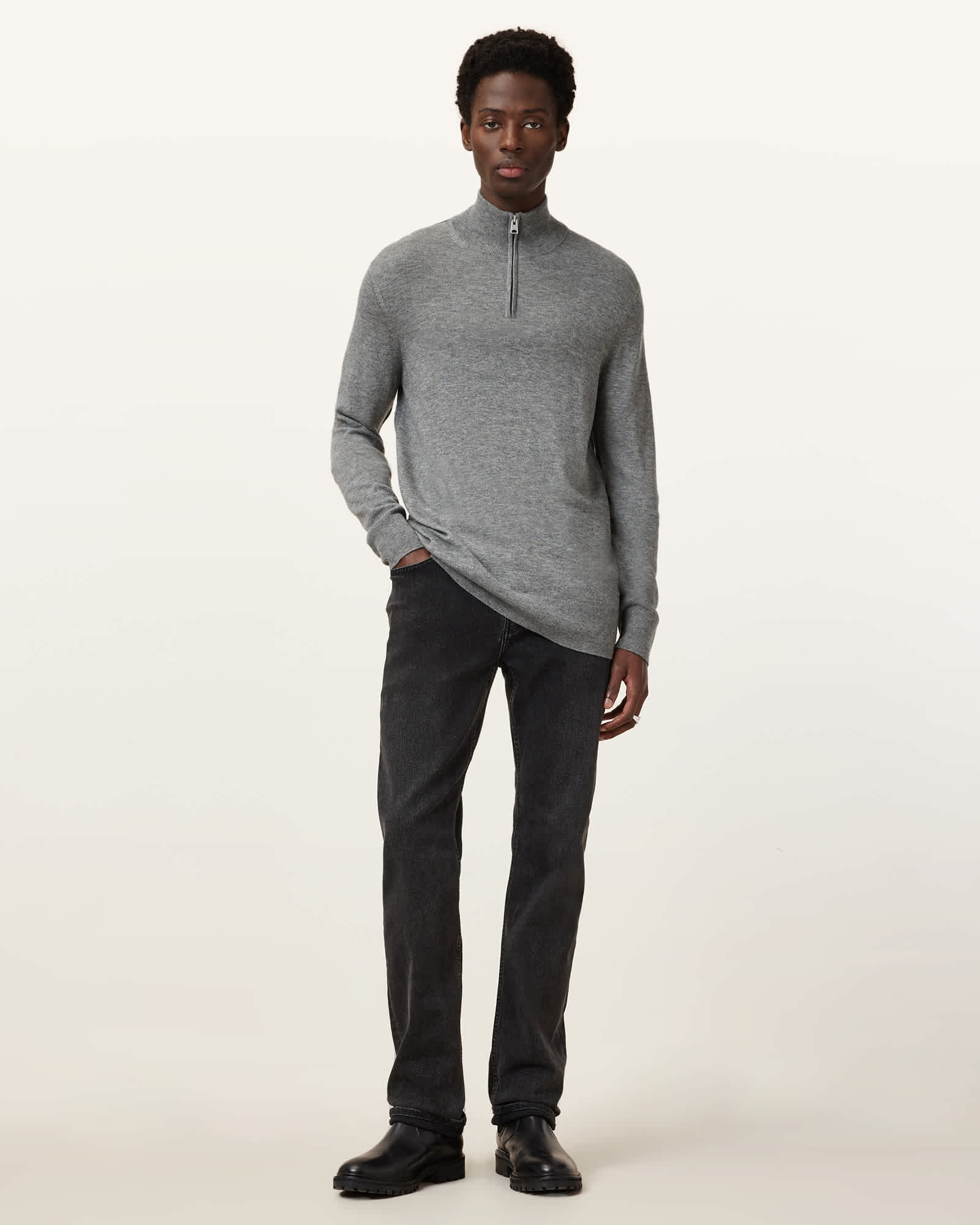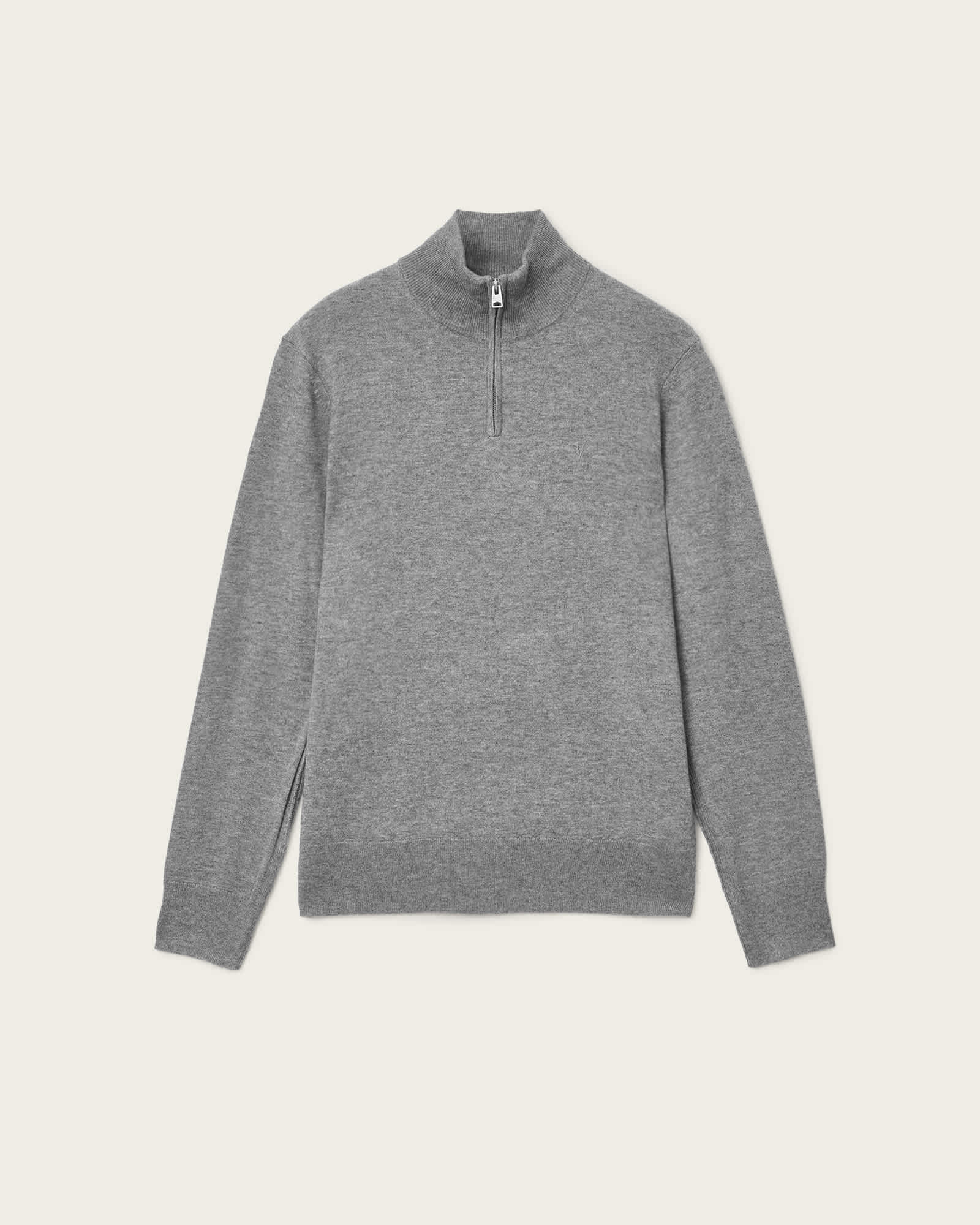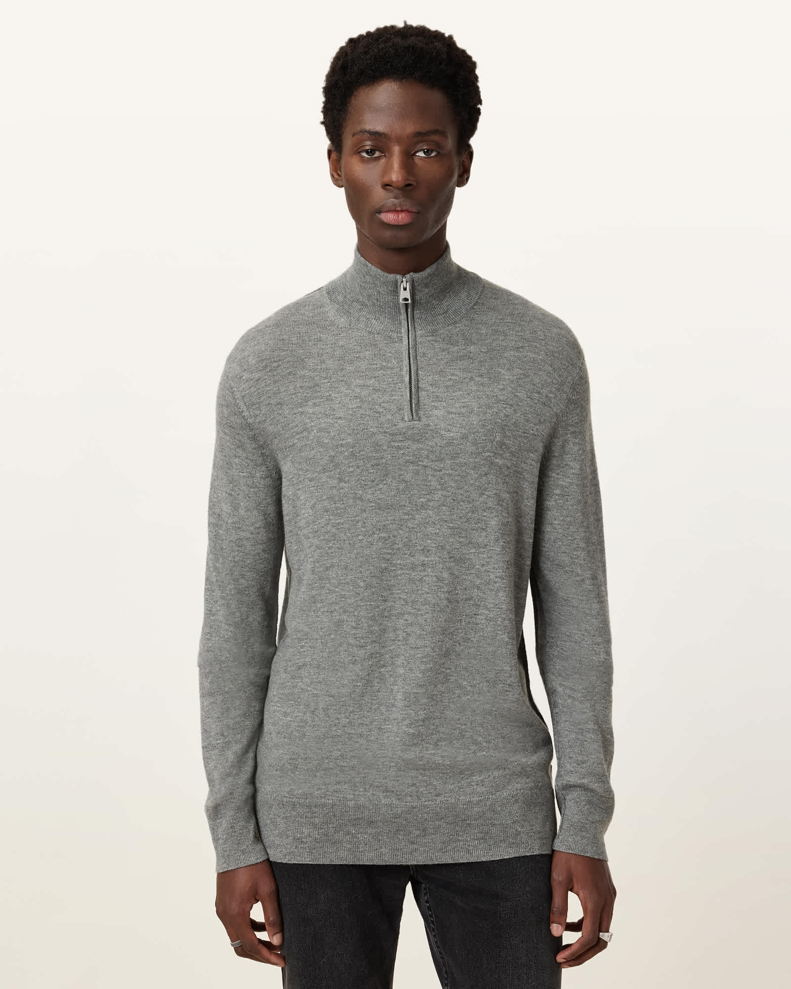 AllSaints Kilburn Zip Funnel Neck Ramskull Jumper,, Fossil Grey | ricciano CANADA