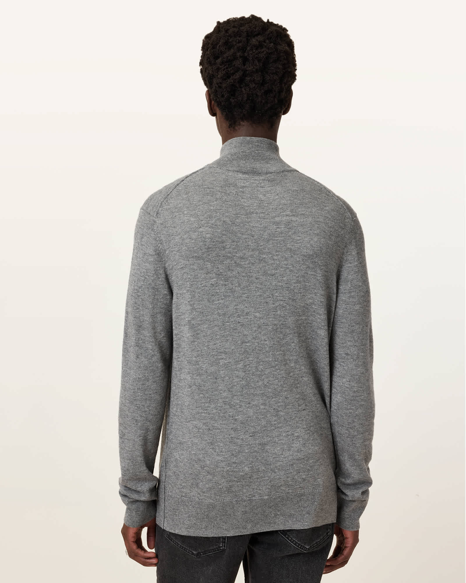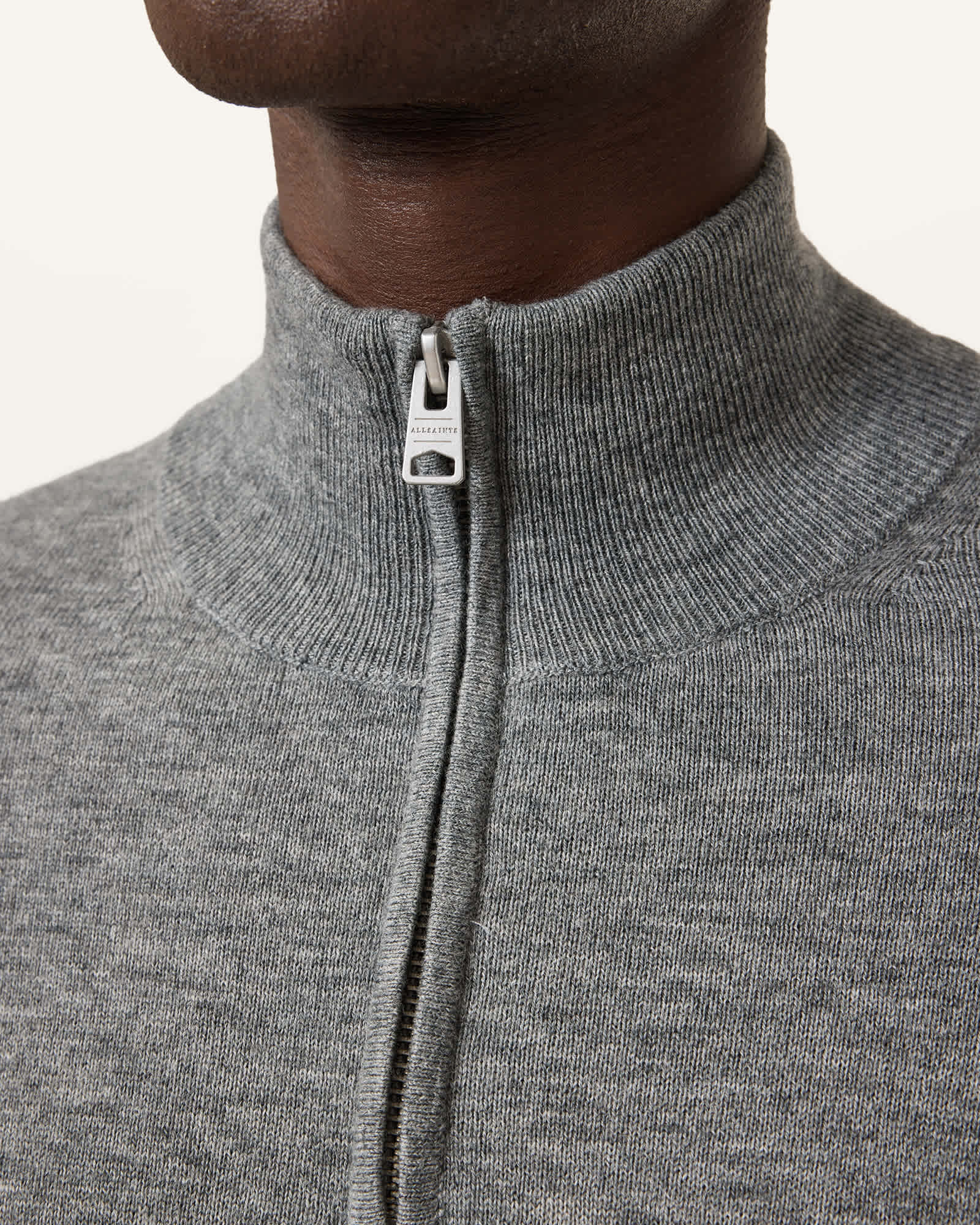 AllSaints Kilburn Zip Funnel Neck Ramskull Jumper,, Fossil Grey