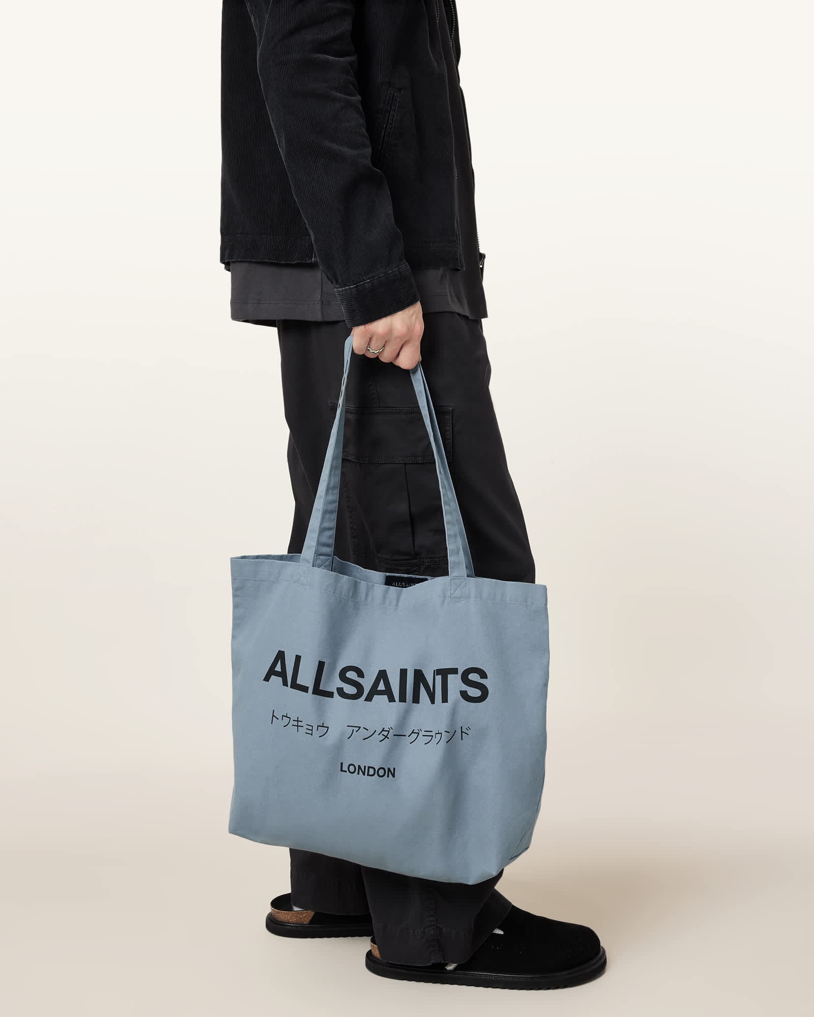 AllSaints Underground Logo Printed Tote Bag,, Stonewash Blue | ricciano CANADA