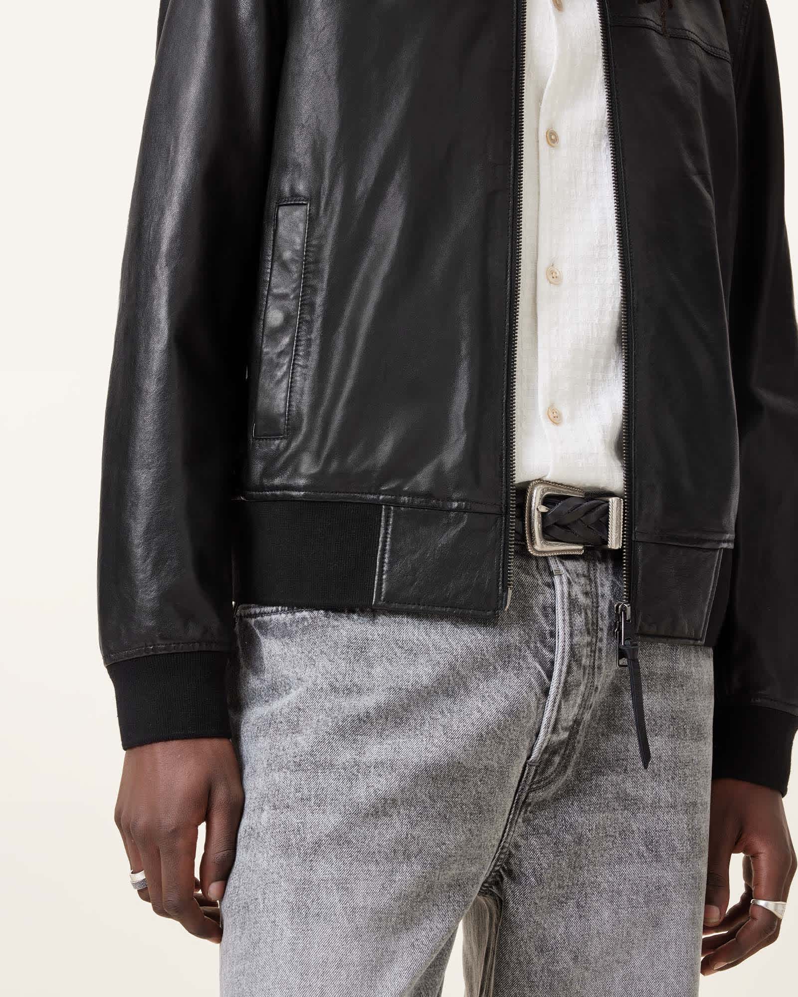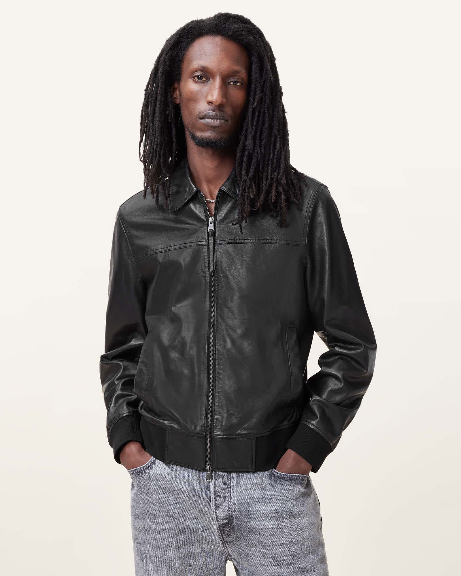 AllSaints Gen Lightweight Slim Fit Leather Jacket,, Black