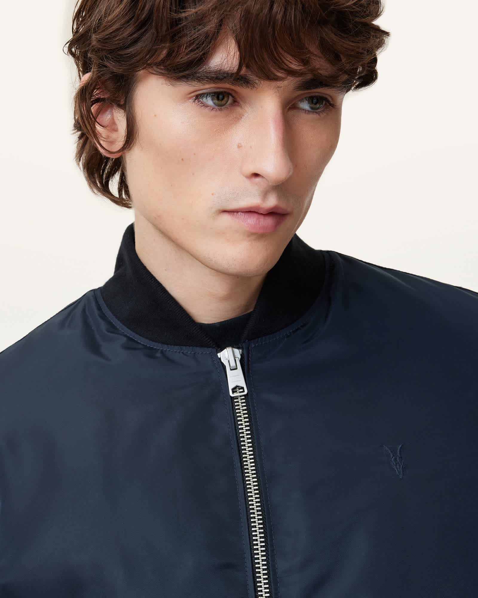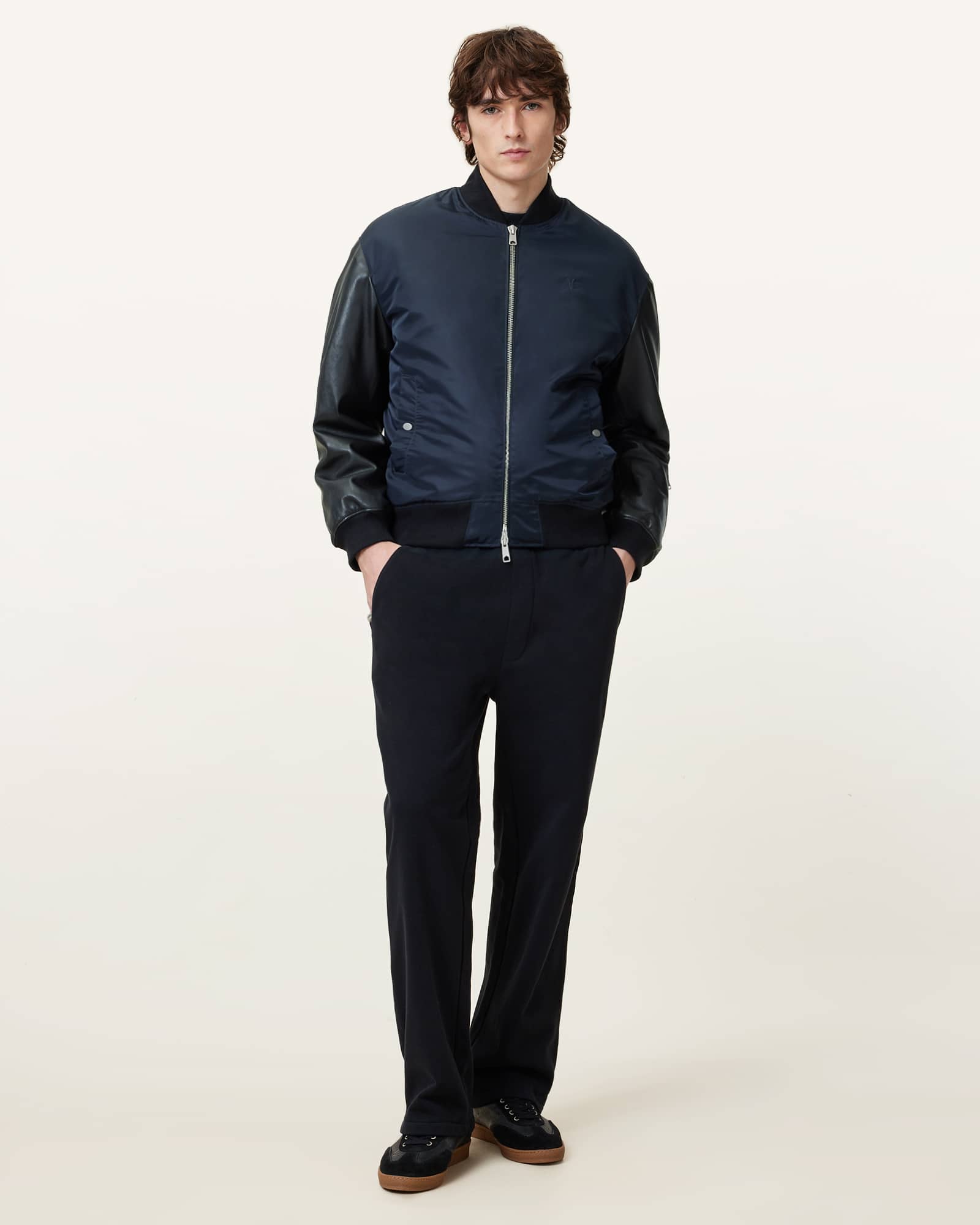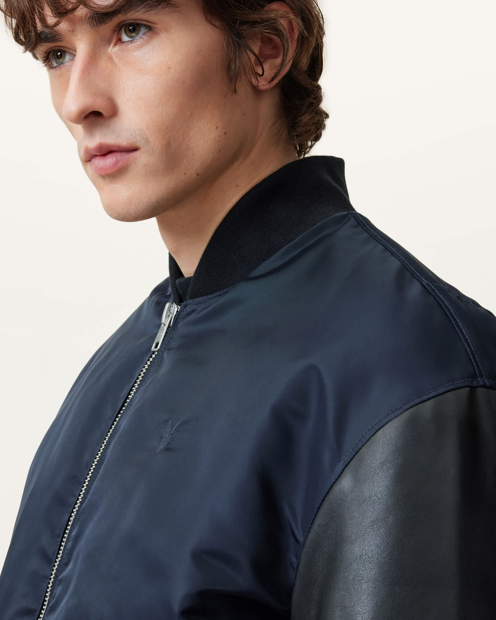 AllSaints Myler Leather Sleeve Bomber,, Black/ink Blue | ricciano CANADA